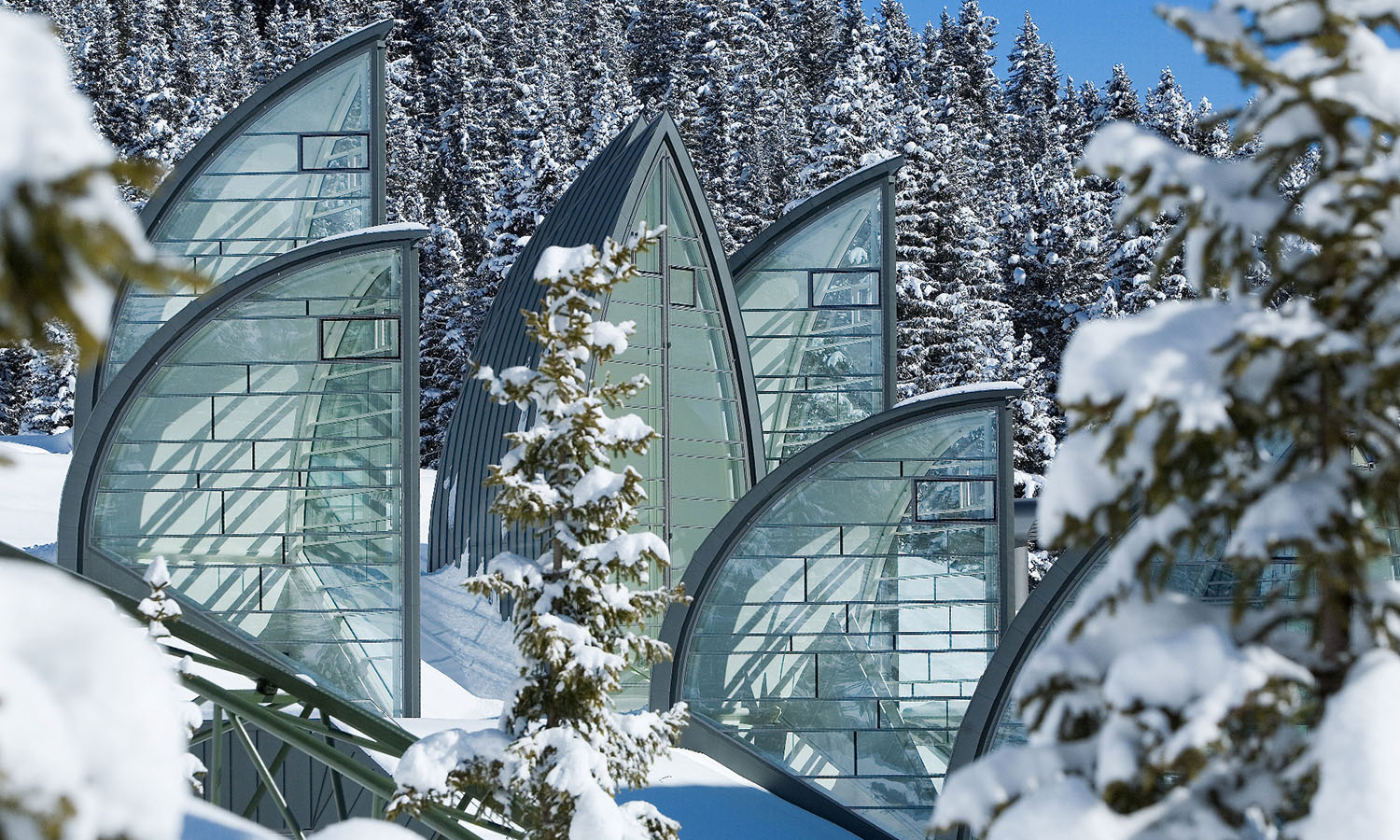 Designed by Swiss architect Mario Botta, Tschuggen Grand Hotel lies in the very middle of the Swiss Alps and is split over four levels. At the top is the Arosa Mountain Grotto, which from the outside resembles a cluster of glassy mountain peaks, self-proclaimed wellness hotel, four restaurants, lounge and a bar.