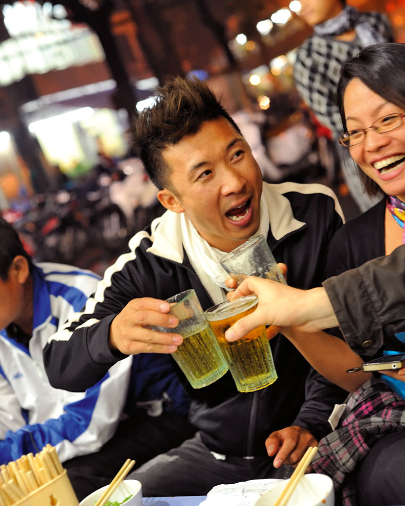 While it was the French who introduced beer to Vietnam, it was the Vietnamese who made it fresh, to be consumed the same day as production – just like almost every dish of traditional Vietnamese food. Today bia hơi makes up about 30 per cent of the beer sold across Vietnam, the bulk of which is downed in Hanoi, where bia hơi culture is very firmly rooted. Here, there’s a beer joint on every city block, and in Hanoi’s labyrinthine old quarter there’s one on almost every corner.