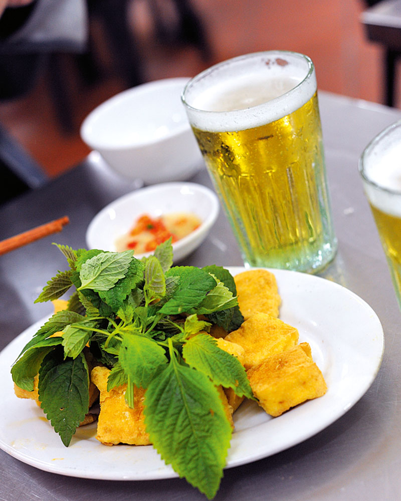 The most surprisingly delicious dish at a good bia hơi joint is fried tofu. Tofu is made daily in Hanoi, so find the freshest you can to make this dish. The dipping sauce, muoi tieu chanh, is not as famous as nuoc cham (the ubiquitous fish sauce-based dipping sauce), but is just as present on Vietnamese tables and lifts any dish it touches.