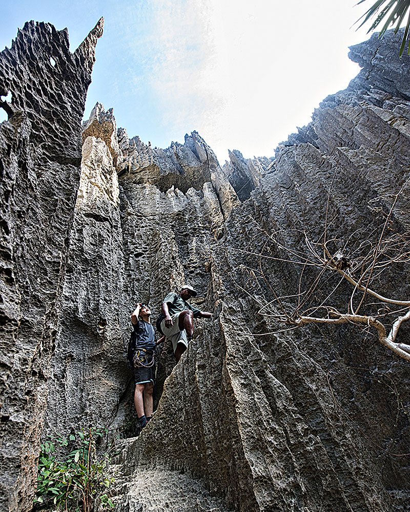Sculpted by water over many millennia, gouging the earth’s rock and soil, Tsingy de Bemaraha is a forest unlike any other. Vast caverns and jagged limestone karst towers pucker the land, some peaking at 100 metres tall, like something straight out of an Indiana Jones movie.