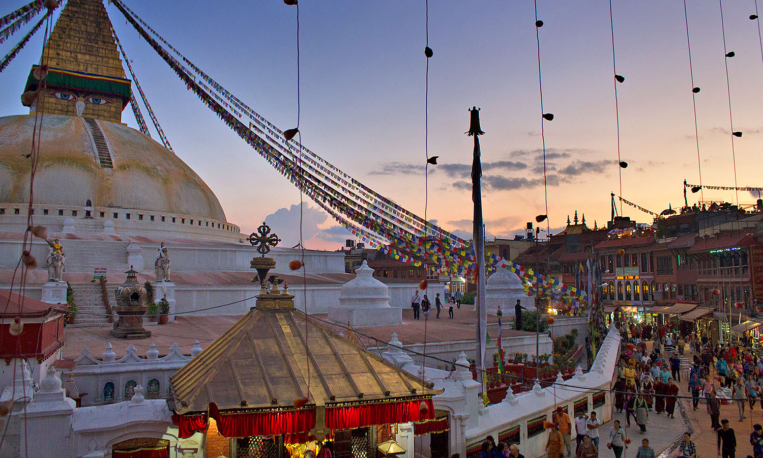 In a city filled with the incessant tooting of taxis and rickshaws, and stall owners selling their wares, Boudhanath Stupa is a peaceful retreat nestled among the constant hustle and bustle of Kathmandu. Built during the fourteenth century, the stupa is situated near the outskirts of the city in Bouda, and has been an important place for pilgrimage and meditation for Tibetan Buddhists and local Nepali people for centuries.