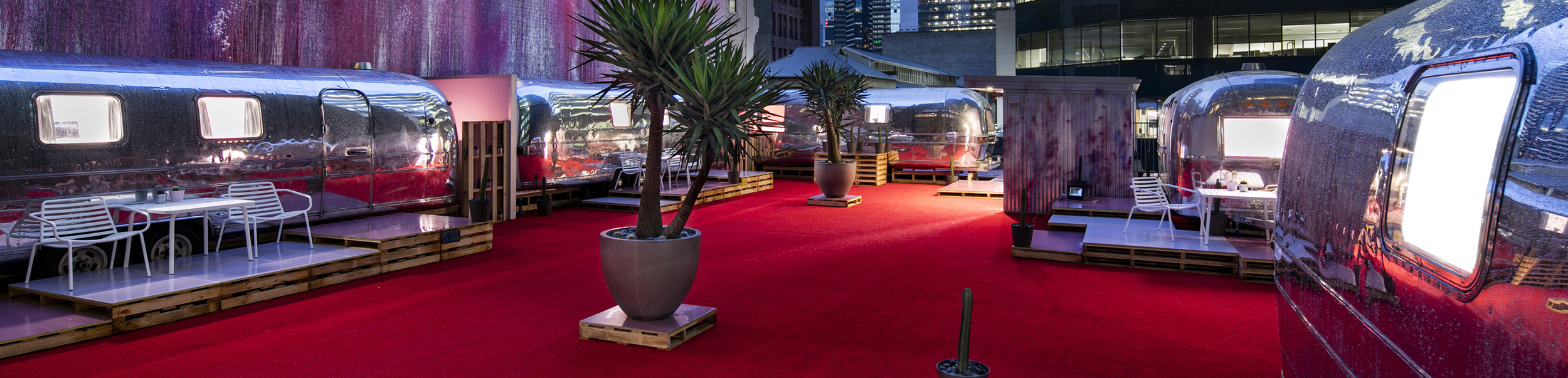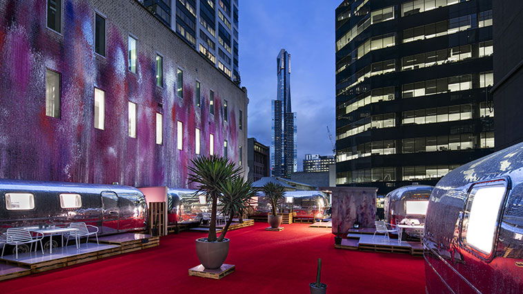 NOTEL is an airstream destination. Located in the middle of Melbourne's CBD on the rooftop of a Flinders Lane car park, these top-of-the-line airstreams come with their own decked area, queen size bed, and a virtual concierge.