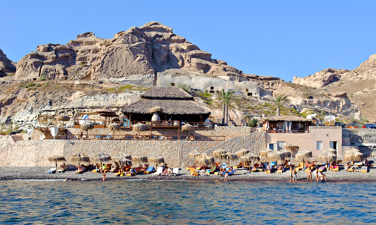 Situated away from the rows of beach clubs that are most commonly associated with Santorini, Theros Wave Bar is the perfect place to kick back and escape the crowds. With the spectacular sandstone formations sparsely dotted with shrubbery, you could be forgiven for thinking you’ve arrived on the set of Star Wars.