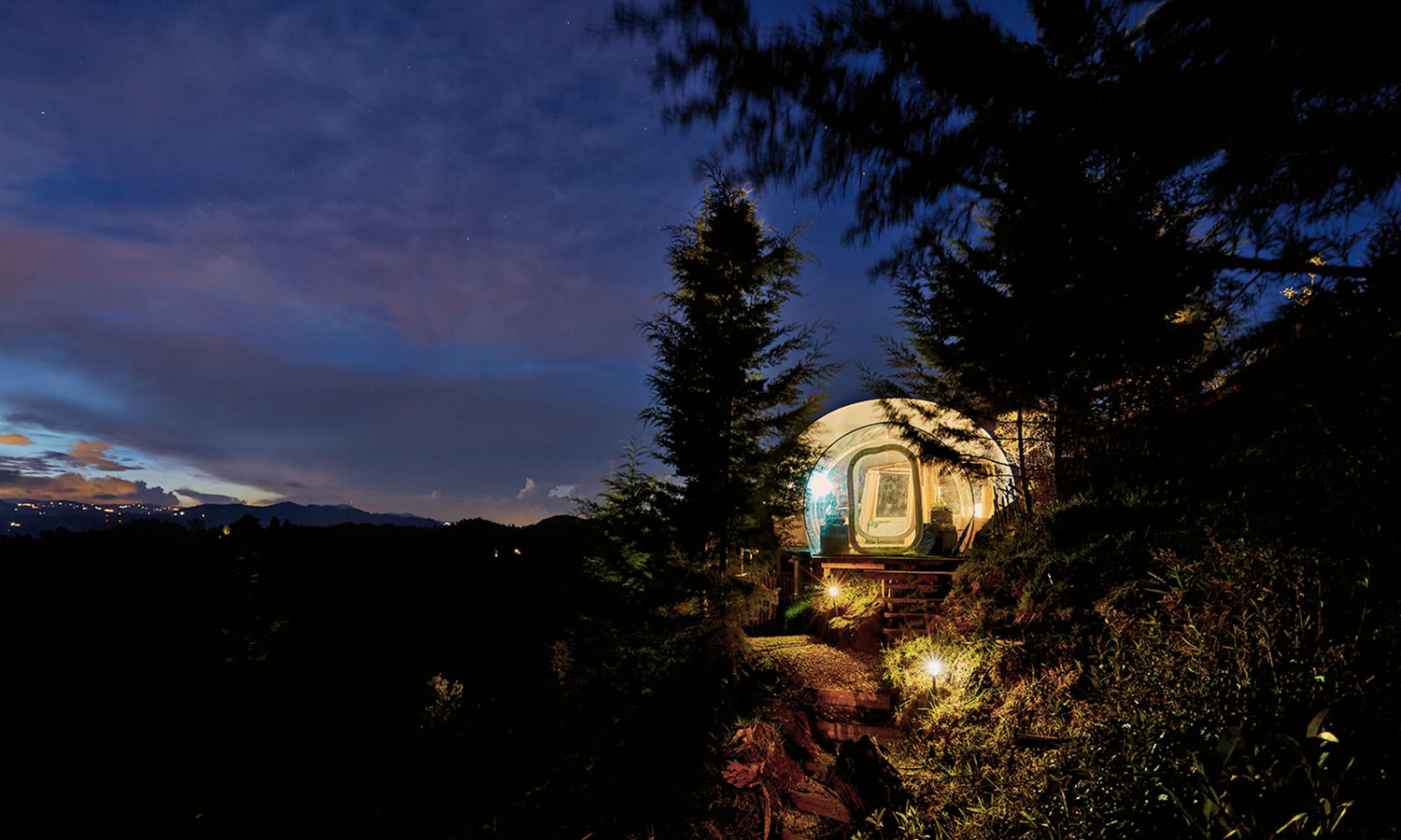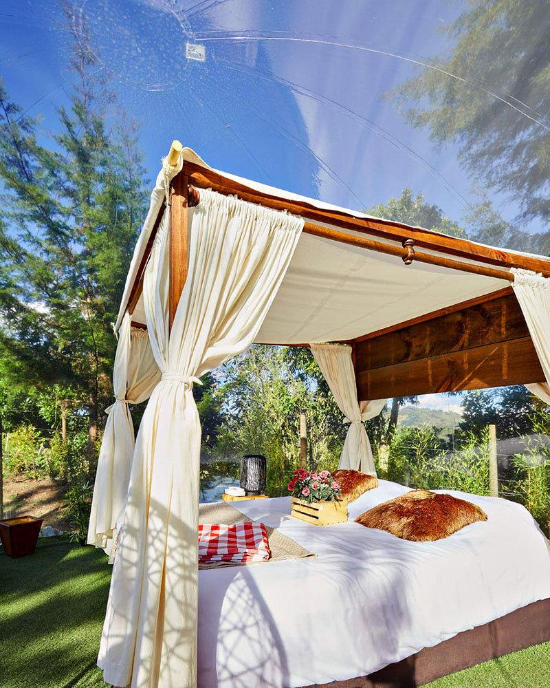 Immersing yourself in nature without the sacrifice of comfort is exactly what you’ll get in a BubbleSky ‘tent’. The transparent dome, hidden within El Retiro, Antioquia, keeps a close eye on its carbon footprint with each room inflated by an air compressor using the same amount of energy as a 55 watt light bulb.