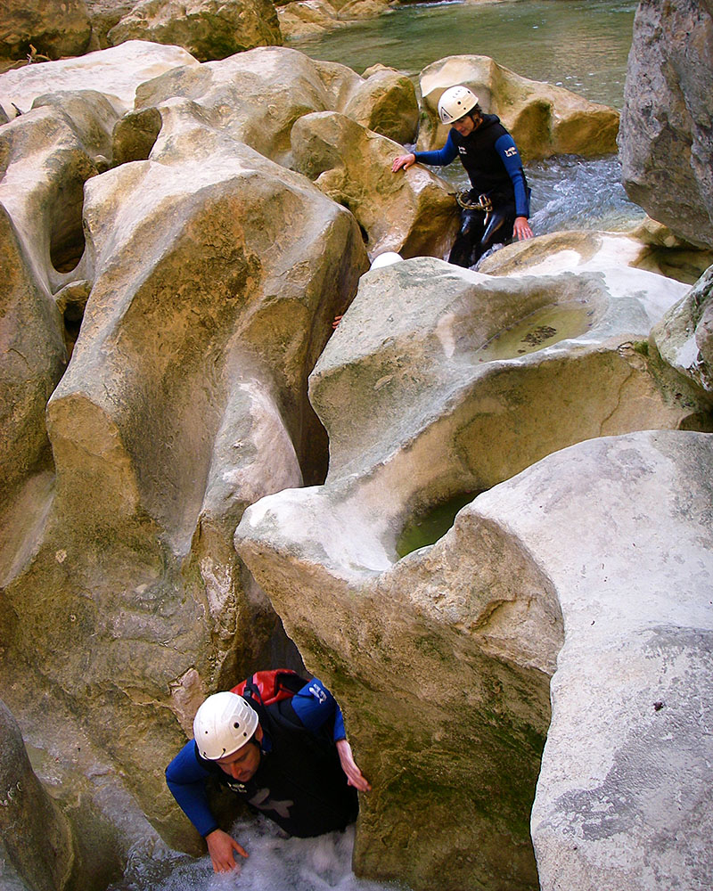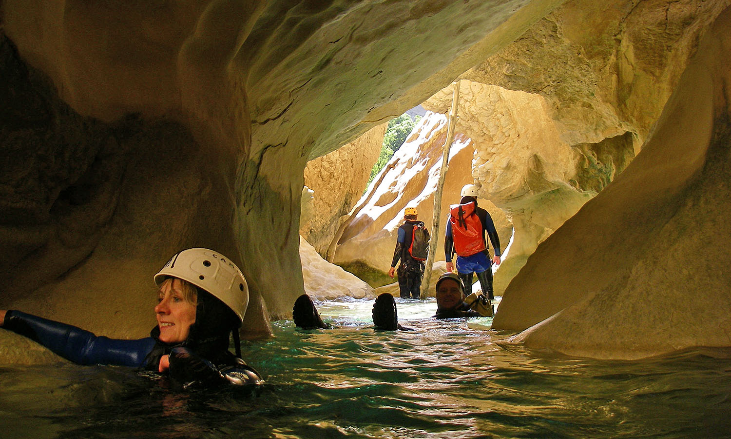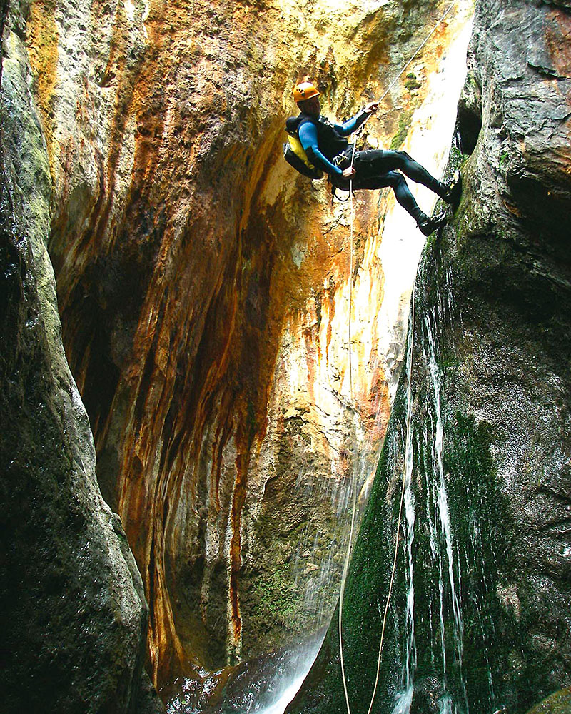Abseil vertical canyons and hurtle down water chutes and waterfalls, then dry out in a sunlit gully beyond the Spanish border. Here you can dive into warm, blue swimming holes, scale rock faces and unwind with a bottle of local wine or two. Feel your heart in your mouth with a final, 150-metre free-hanging abseil down the Foratata Canyon.