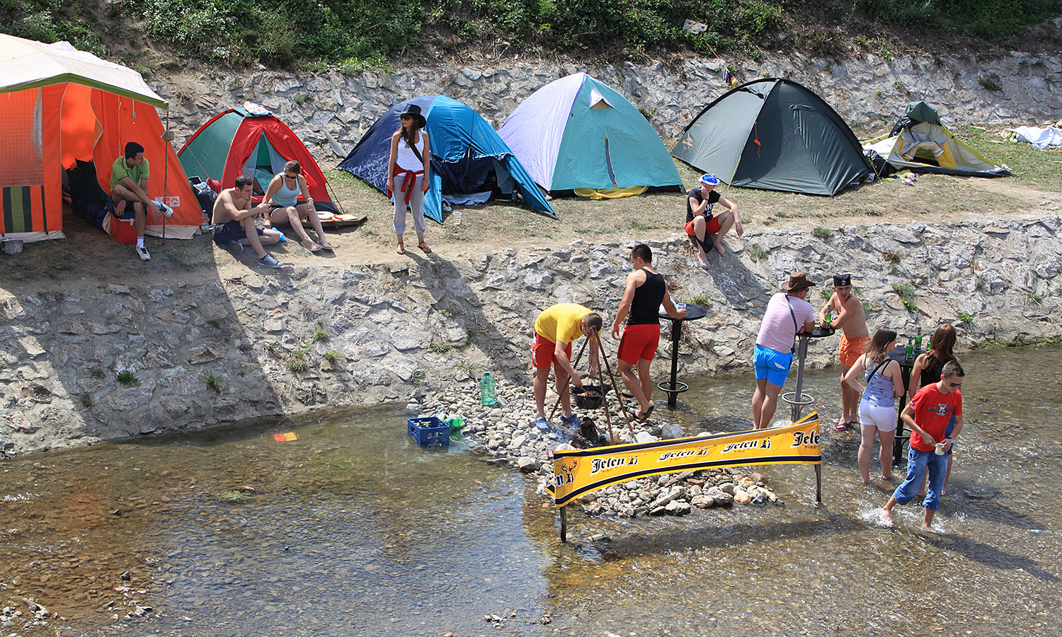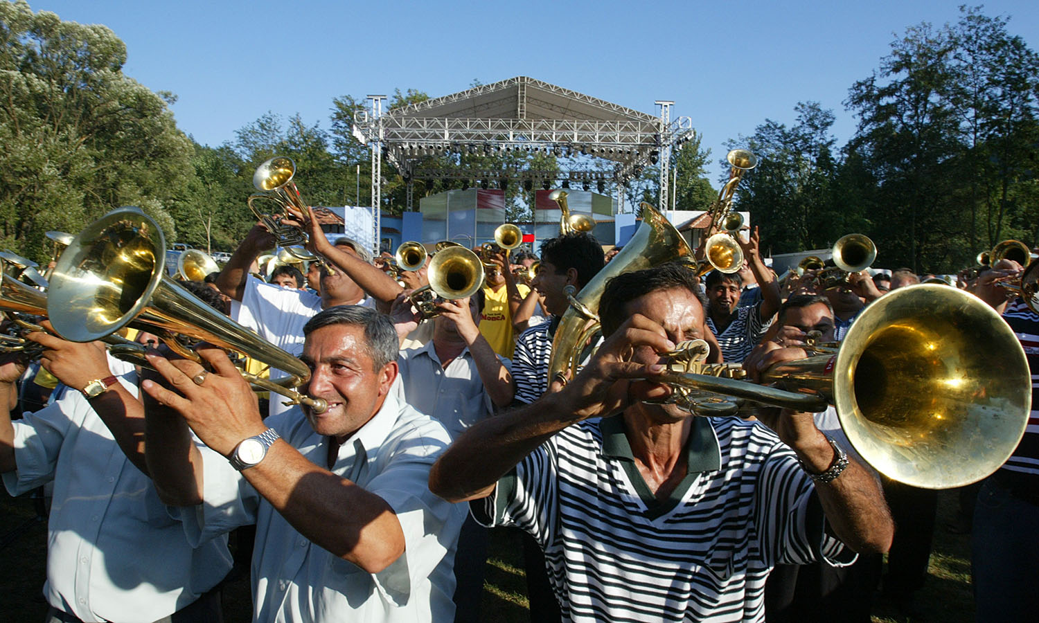 Days begin with sticky shots of rakia (plum brandy) followed by gallons of local beer. Competitors’ tunes are rehearsed to perfection, but a din of vevuzelas sounds over the trumpets mingling with the chants of patriotism in the hot summer air.