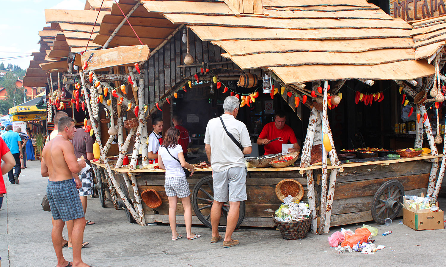 Official competitors perform on stage from Friday through to Sunday, while gypsy orchestras and travelling bands jam in surrounding streets and restaurants, tooting Balkan tunes in exchange for cash licked and pasted to their sweaty foreheads.
