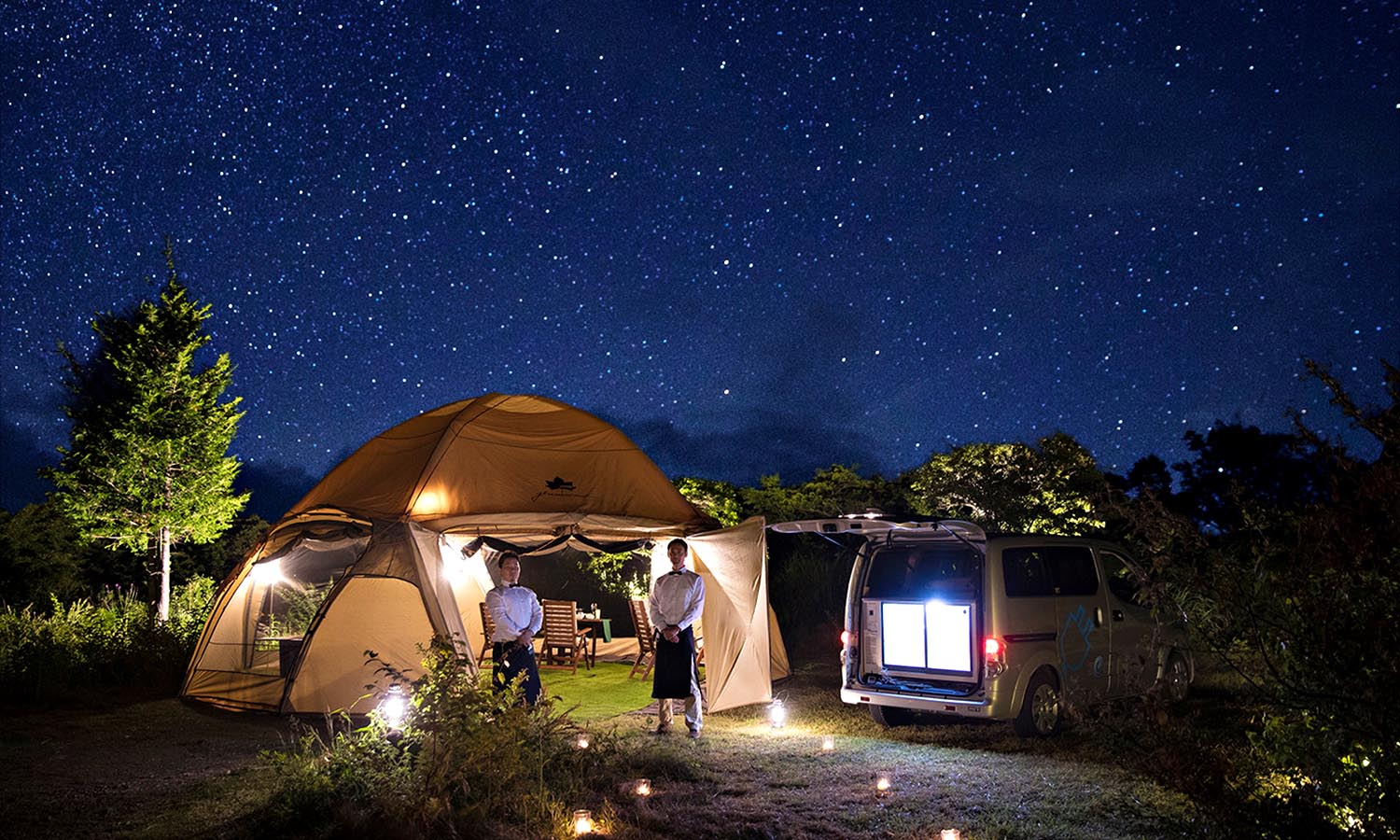 For those who can't let go of creature comforts can enjoy high-quality local food and drinks amidst nature with a personalised star-gazing tour. The restaurant (yes you read correctly), is located in the lush nature of Chubusangaku National Park, and guests can relish in delicious alcoholic beverages made from nature’s bounties in the mountains and meals prepared with local ingredients.