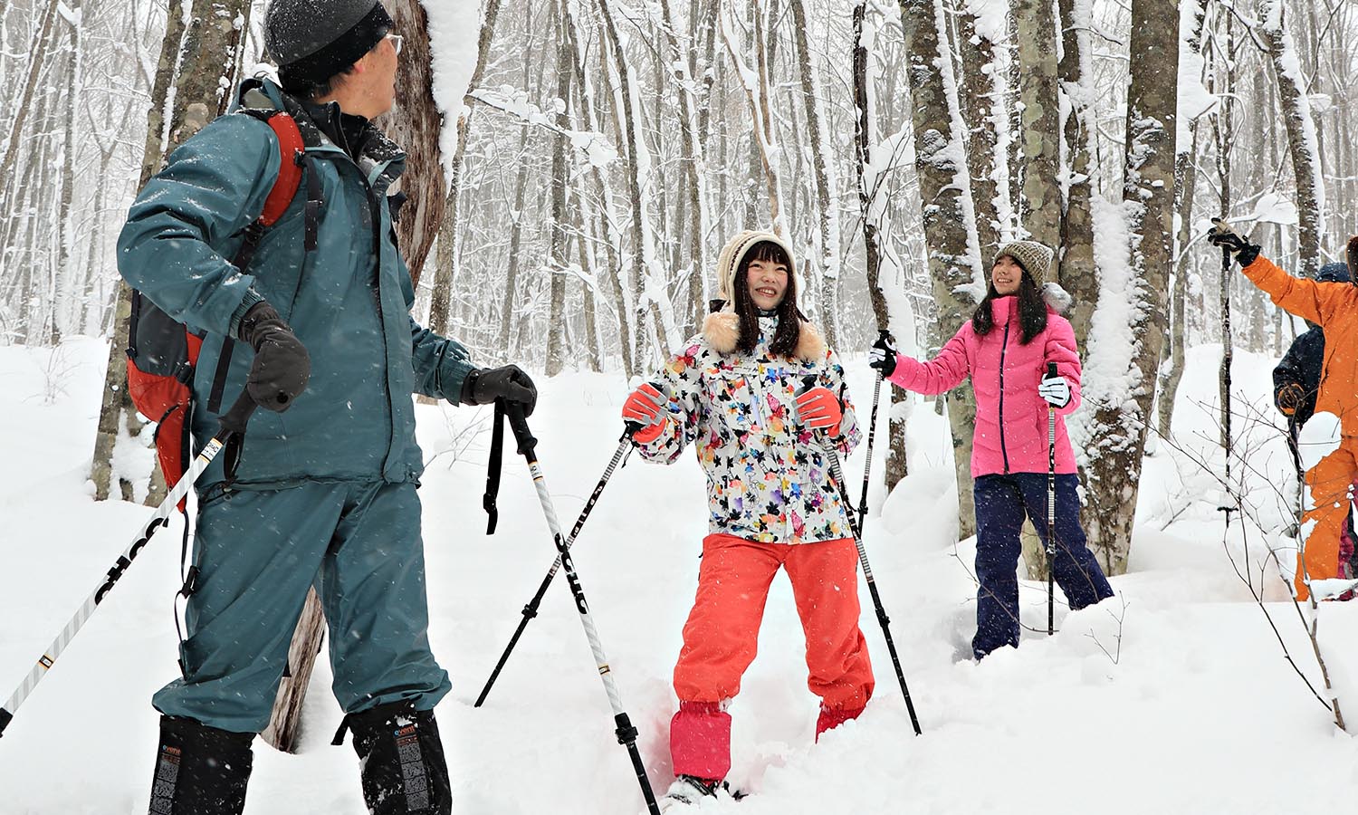 A snowshoeing tour of the snow-covered Alps is available dependent on the weather and snow conditions, but the Kamoshika (Serow) ski slope course, which is 1,700 meters above sea level, is a popular choice, as well as the frozen Hirayu. After a hard day snowshoeing, refresh the body and soul in the free-flowing hot spring water of Hirayu Onsen.