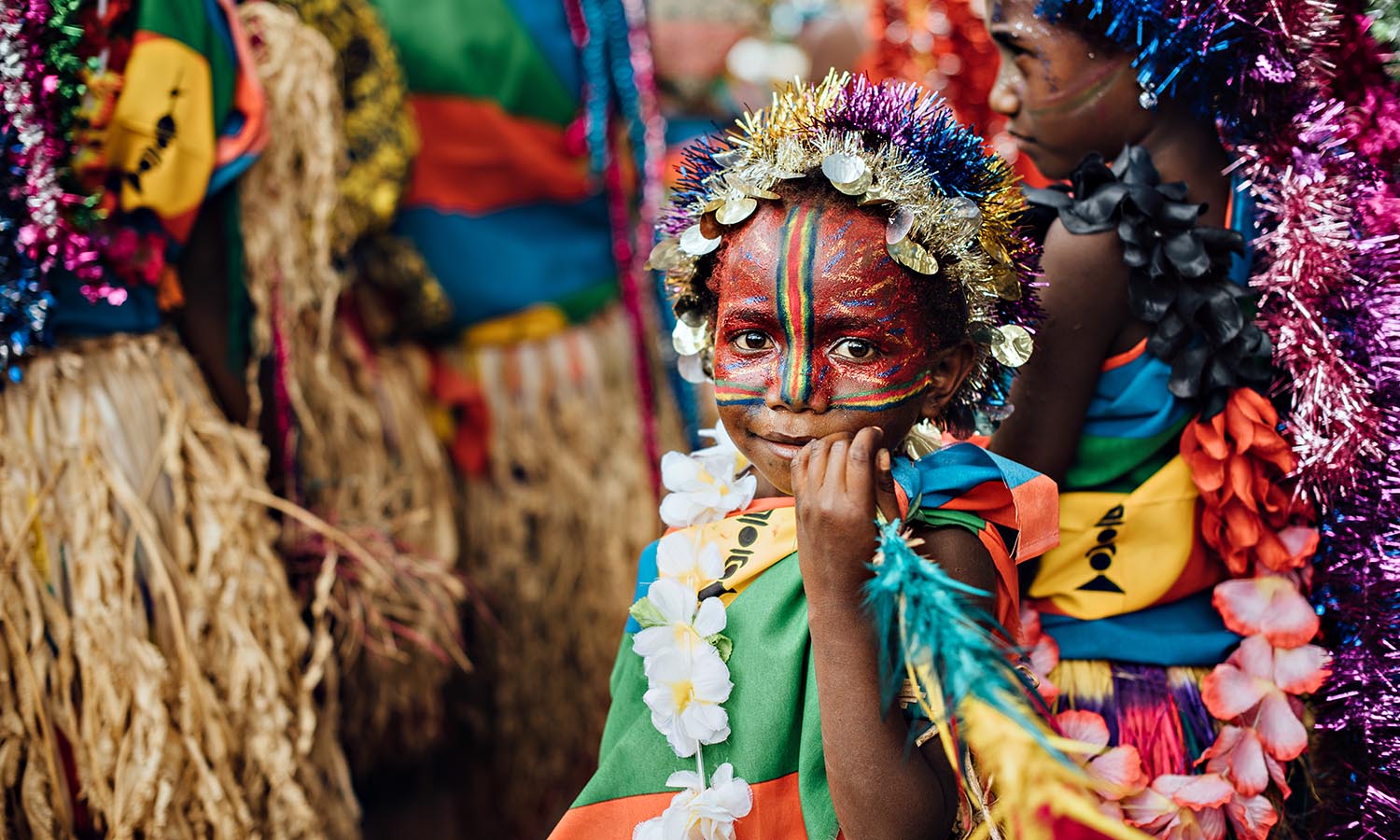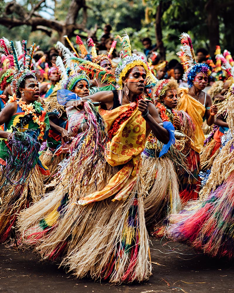 The festival is an extravaganza of the senses, taking place across three full days and nights. Hundreds of dancers join together and paint their faces with brightly coloured designs, significant to their tribal community, and the following days are filled with kastom song and dance.