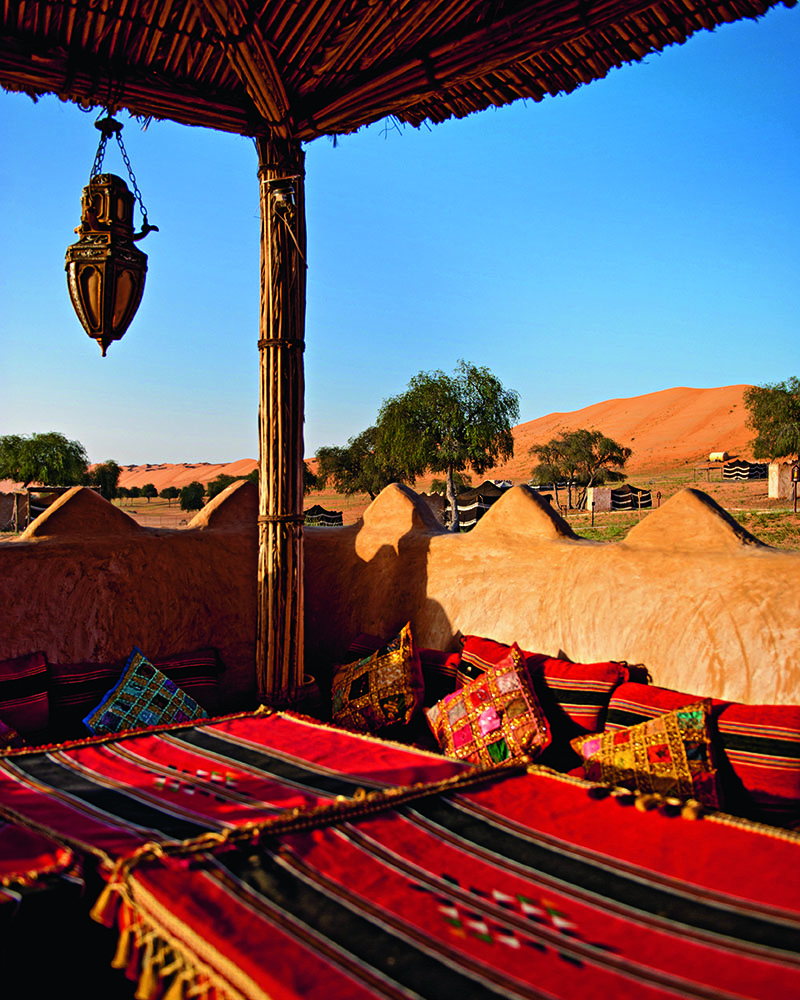 Deep in the vast Sharqiya Sands, in Oman's north-eastern corner, lies a community that has lived in much the same way for centuries. The Bedouins of this remote desert region herd, farm and fish their way to survival, bedding down in makeshift tents woven from goat's hair that rustle in the desert breeze. Most locals reside near Al Huyawah, a natural oasis near the border of the desert, where tribesmen gather during late summer to pluck ripe yellow dates from palms.