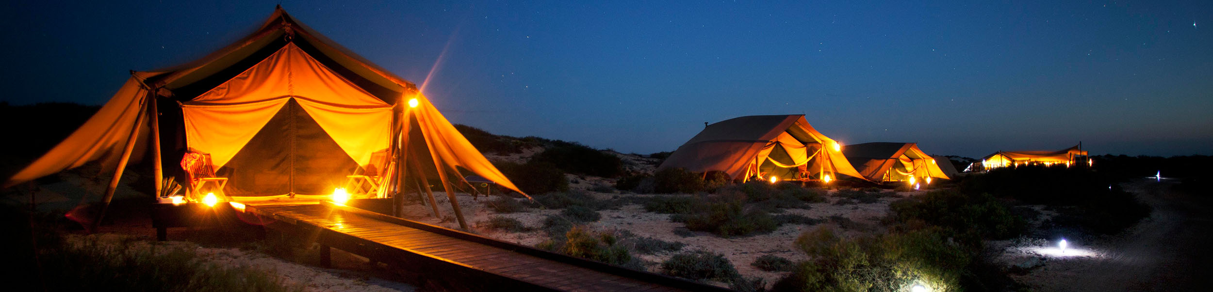 Picture this: 16 spacious wilderness tents just metres from white, sugar-soft sands, spectacular coral and rugged limestone ranges. Hidden in the sand dunes of WA’s Cape Range National Park, at a rather enviable spot where bush and sea brush shoulders, Sal Salis offers all the creature comforts of a five-star stay. There's a springy bed, 100% organic cotton linen, fluffy bath towels, an ensuite bathroom, a bar and top-notch grub – but at minimal impact to the environment. Almost 100 per cent of the camp's power comes from solar energy, the toiletries provided are all eco-friendly and the toilets are waterless and composting.