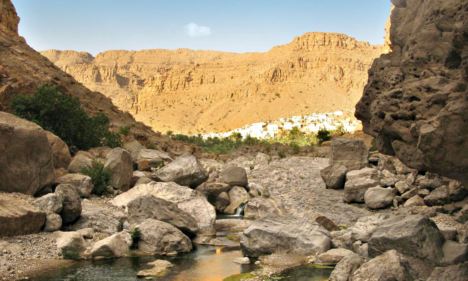 From there you will travel through the deep Wadi Ghul, a vast cleft in the mountains, and arrive at Jebel Shams, “mountain of the sun,” the undisputed lord of the mountains. This is the highest peak of the Jebel Al Akhdar mountain range, and it soars 3000 metres above sea level and looks out over the Grand Canyon of Oman. Take in the spectacular scenery, ancient rock carvings and remote villages before continuing to the beautiful old village of Misfah, which is perched on the side of a mountain where narrow ancient stone pathways lead you into the valley below.