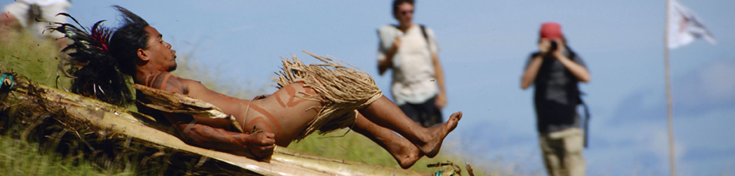 Some sports are best enjoyed from the sidelines, and Haka Pei is one of them. Unless of course you’re not averse to the odd broken bone, cuts, bruises and an excruciating case of gravel rash. Every year, during Easter Island’s Tapati Rapa Nui festival, young men (and some women) hurtle down the slopes of a 300-metre-high volcano called Maunga Pu on a sled made of two banana tree trunks, wearing little more than a loin cloth.