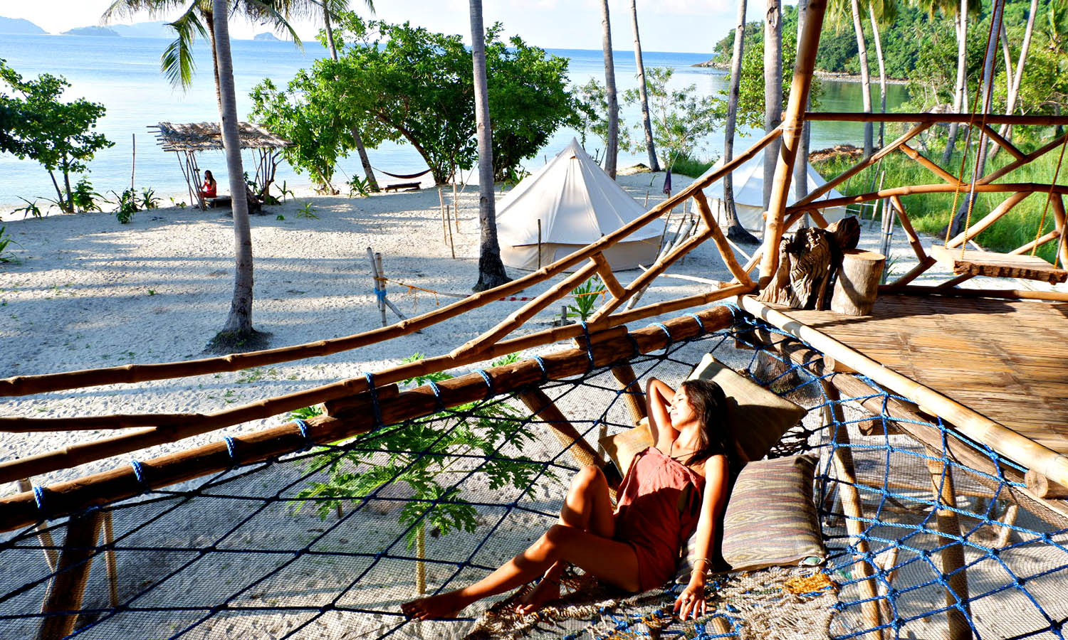 Dryft is a bed of tranquillity—a getaway of palm trees and purity, without internet and without worry. It is a group of glamping tents on the tiny (almost deserted) Darocotan Island, a 15-minute boat ride from the village of Teneguiban on Palawan Island.