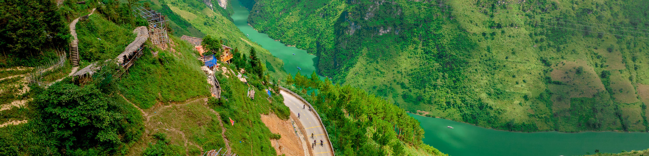 Journey through Northern Vietnam’s striking scenery, riding up to Heaven’s Gate Pass, passing rice terraces, ethnic minority villages, and towering limestone peaks. -