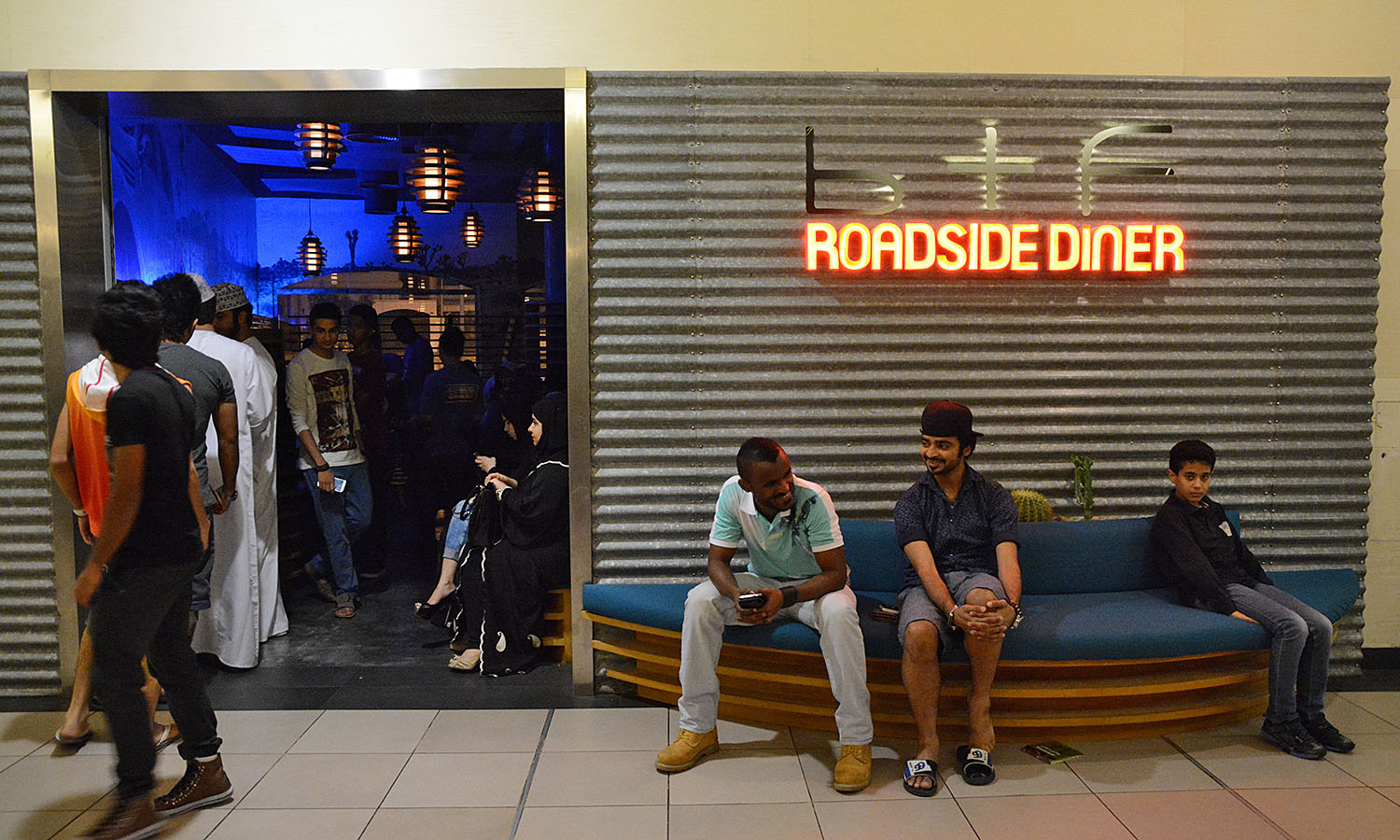 You’re spoilt for choice to fill your belly at Bareeq Al Shatti mall, but be sure to stop off at B+F Roadside Diner, where trendy twenty-somethings flash eyes at each other while queuing to get inside. Its signature dish of Dynamite Fries – a delicious mess of chips topped with minced beef, cheese, ranch sauce and jalapenos – is downright ugly, but boy does it taste good.