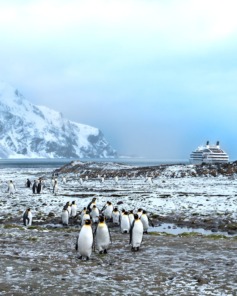 Your arrival via Zodiac® means you can get up close to these magnificent creatures, who blanket the black sand beaches of the south-Atlantic Ocean island every November to begin their breeding and nesting season.
