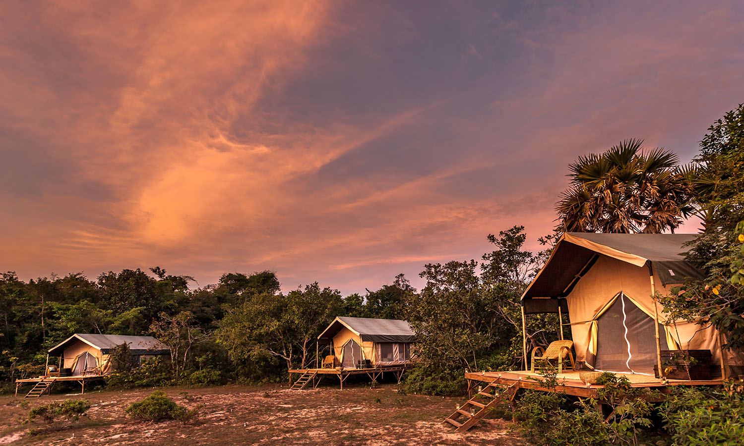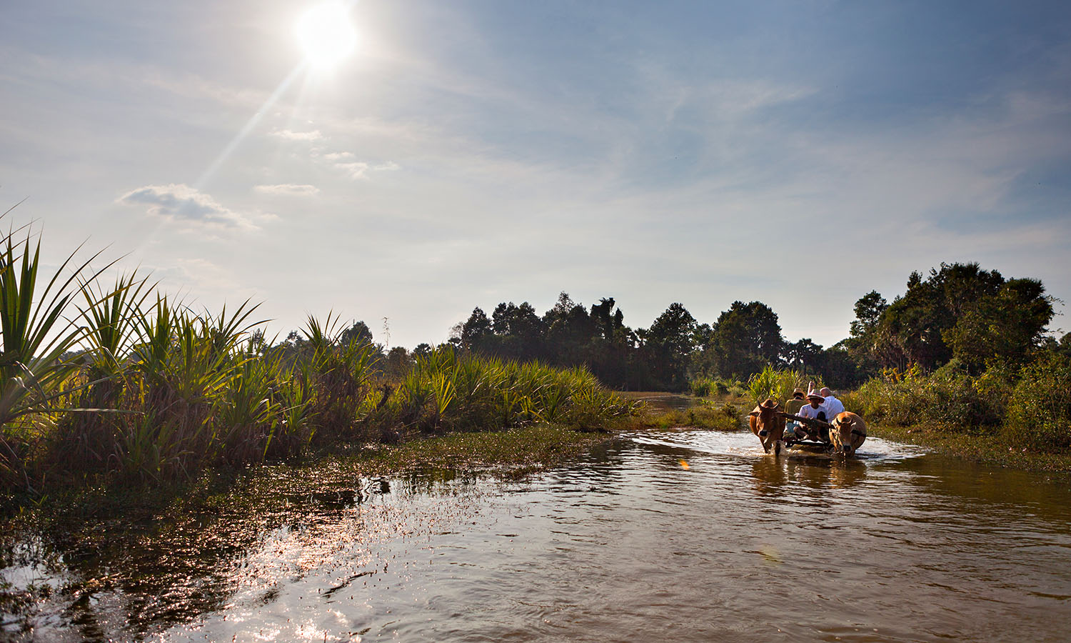 Unwind with a picnic lunch at Poeung Komnou, an ancient sight of intricate Hindu carvings set among green surrounds, then head to the campsite where you’ll be greeted and treated with a chilled cocktail to kick start your evening. After soaking in the comforts of your own private and lavish tent, experience a gastronomic delight with dinner cooked by the Heritage Restaurant team from the Heritage Suites Hotel. This outside dinning is the perfect mix of nature and glamour with hundreds of tea-light candles flickering over your skin that sets the scene for a relaxing evening. Next morning tuck into a huge breakfast spread before stepping back in time with a ride in a traditional ox cart pulled by cattle to explore some local villages.