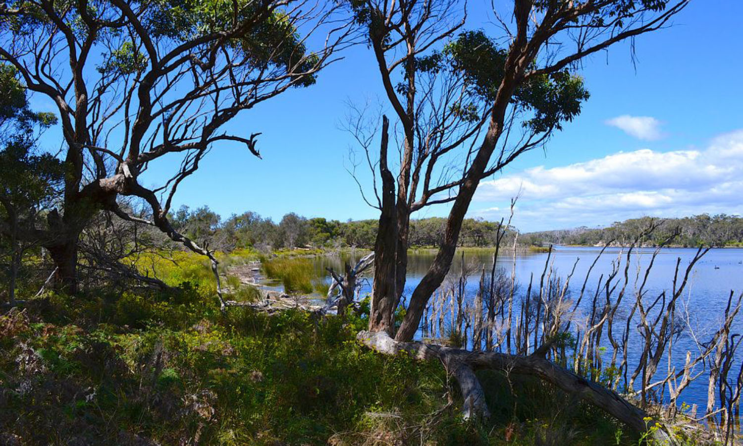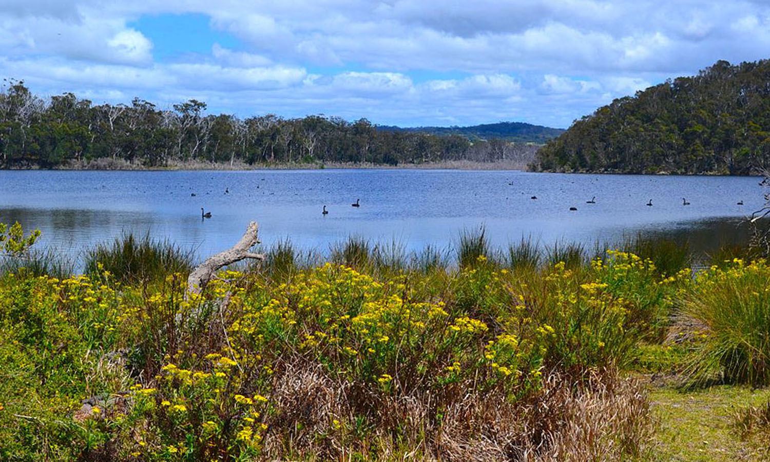 Kangaroos graze on the grass, spoonbills lurk about the dam and there is plenty of other wildlife to keep guests entertained. During the day, you can relax and watch the rosellas from your deck or take a canoe out across the water. More active visitors can hike along the edge of the lagoon to Middle Beach’s surf breaks to spot migrating whales.