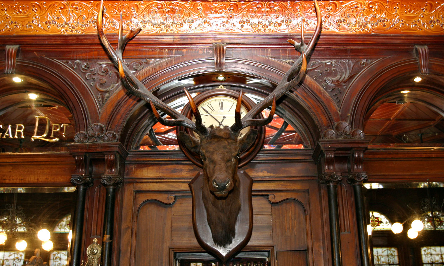 The Stag's Head is a Dublin landmark with a mood to suit every personality. The main bar is a tribute to tradition: polished mahogany, walnut and ebony, leather chairs, stained glass windows, chandeliers, and dark oak whiskey casks sunk into the walls – from where the eponymous stuffed beast keeps watch.
