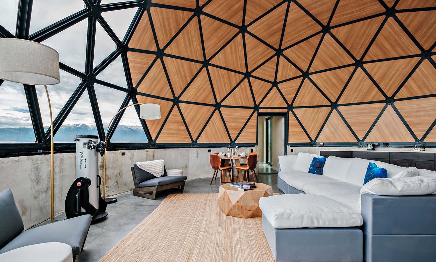 But the villas are the main event. The Stargazing Villa sleeps up to four, with a king bed, two twins, a private indoor jacuzzi, and a geodesic dome for telescope-toting stargazers.