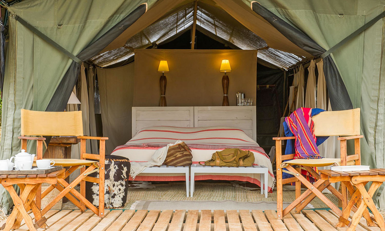 Just six tents, set in a grove of acacia trees, offer guests a touch of luxury – think huge beds, ensuite bathrooms and uninterrupted views of the wilderness. The day starts with a dawn chorus of birds and, before it ends at dinnertime in the open-sided thatched dining hut, you’ll marvel at the huge herds of elephants and buffalo and spy countless giraffe and zebra grazing nearby. Prides of lions are also common, but the park’s leopards are a little more covert.
