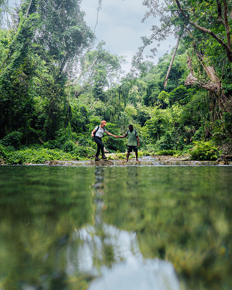 The jungle is thick, green and steamy and you will be caked in sweat. It will run rivers down your arms and chin. No need to despair though, there is a heavenly aqua pool surrounded by limestone rock at the base of the waterfall where you don't even have to change into your swimmers to enjoy. It's laidback and pretty casual here on Malekula Island, Vanuatu, everything is done with a laugh and a smile.