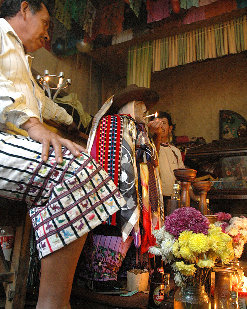 Maximón’s short stature, according to legend, was a result of the men of his village cutting off his arms and legs – his habit of sleeping around with their wives while they were working in the fields was not appreciated.