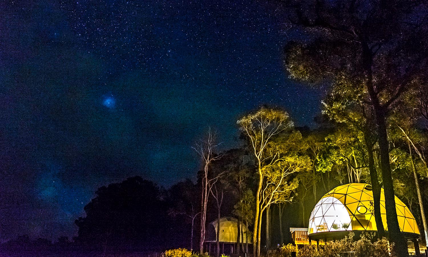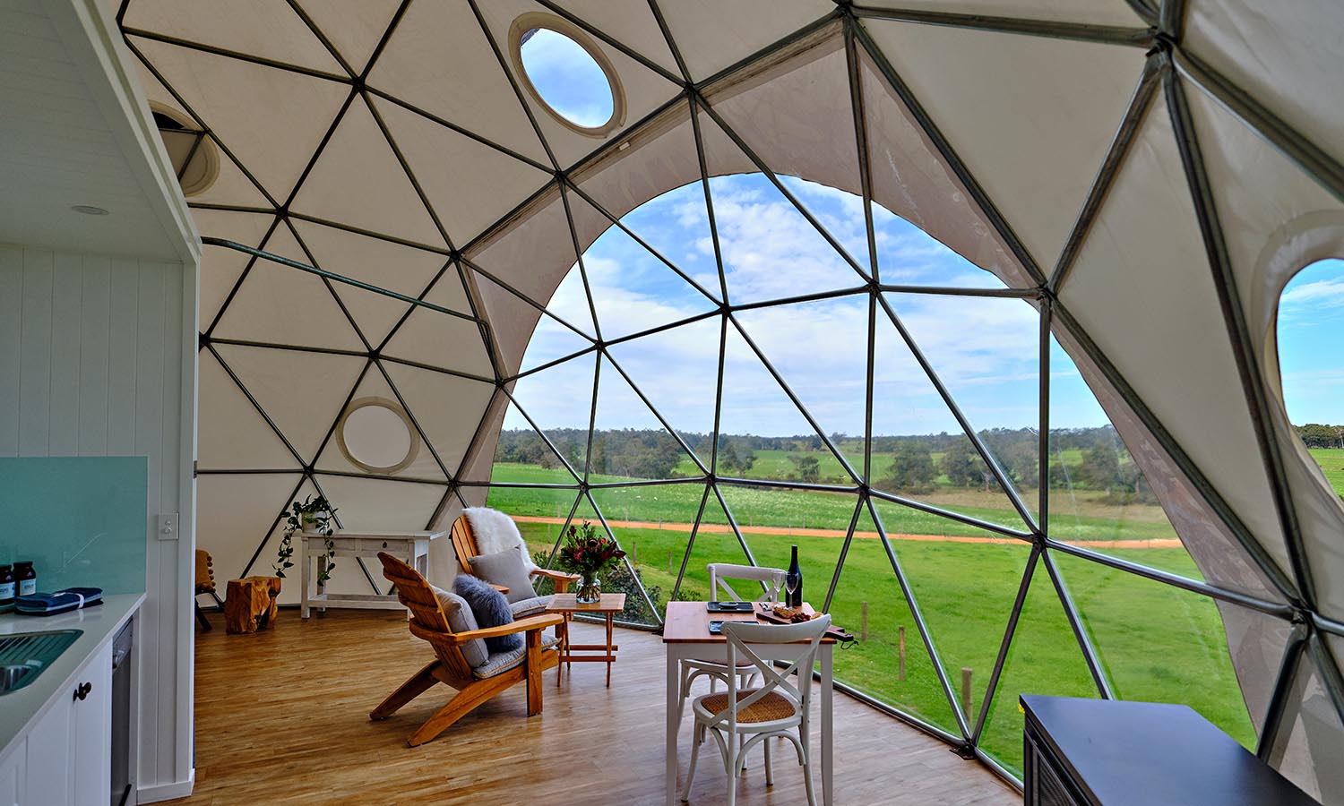 These futuristic pods set on the edge of a forest and overlooking farmland take camping up a notch. Apart from the spacious, light-filled interiors – there’s a four-poster bed, living space and kitchenette – each of the geodesic domes has its own barbecue area and two-person hot tub on the deck.
