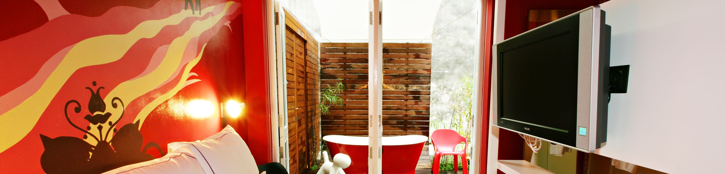 Each of the 30 rooms – some individually designed by emerging artists – is just as wacky and risqué as its name suggest. Think 'floating' beds, high ceilings, bold murals and art installations, cast-iron garden bathtubs and rain showers, as well as an eclectic mix of vintage and designer furniture.