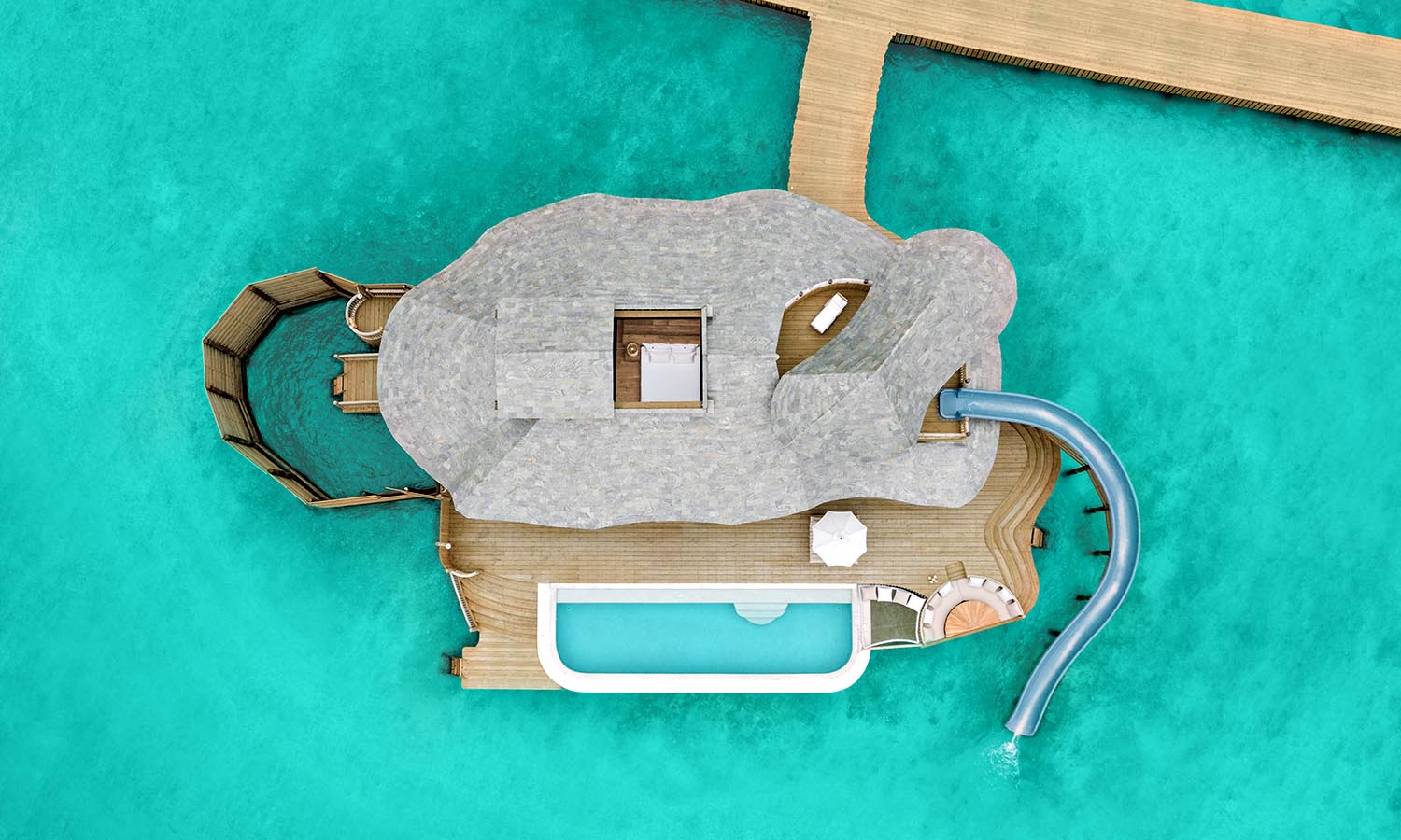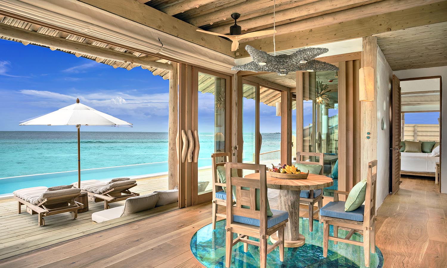 Lucky guests will have a choice between one- and two-bedroom villas that are the largest in the world. Equipped with retractable ceilings over the master bedroom for stargazing and infinity pools suspended above the ocean, these villas really are in a league of their own.
