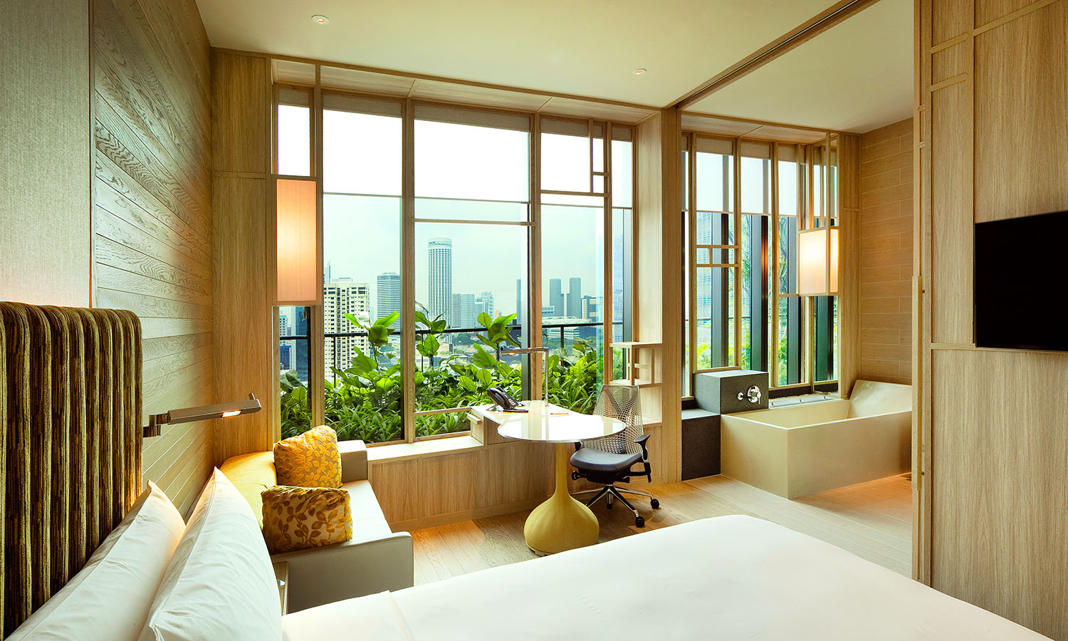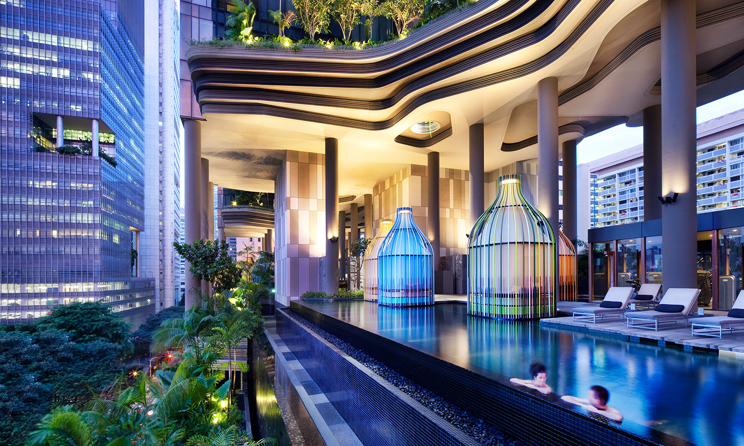 The hotel’s just a brief walk from Clarke Quay, Chinatown and the CBD, so you won’t have to travel far on the hot, concrete streets before finding respite in the 300-metre garden walk. And when you really need to chill, perch in a colourful birdcage cabana by the infinity pool.