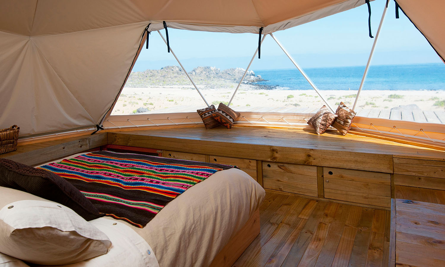 Yes, this tiny camp is in the Atacama Desert, but it’s also on the coast, making it a completely unique destination for adventurous souls. There are just three dome tents on wooden platforms – plenty of space between each for maximum privacy – with attached bathrooms and a shared service centre with kitchen and indoor and outdoor dining spaces.