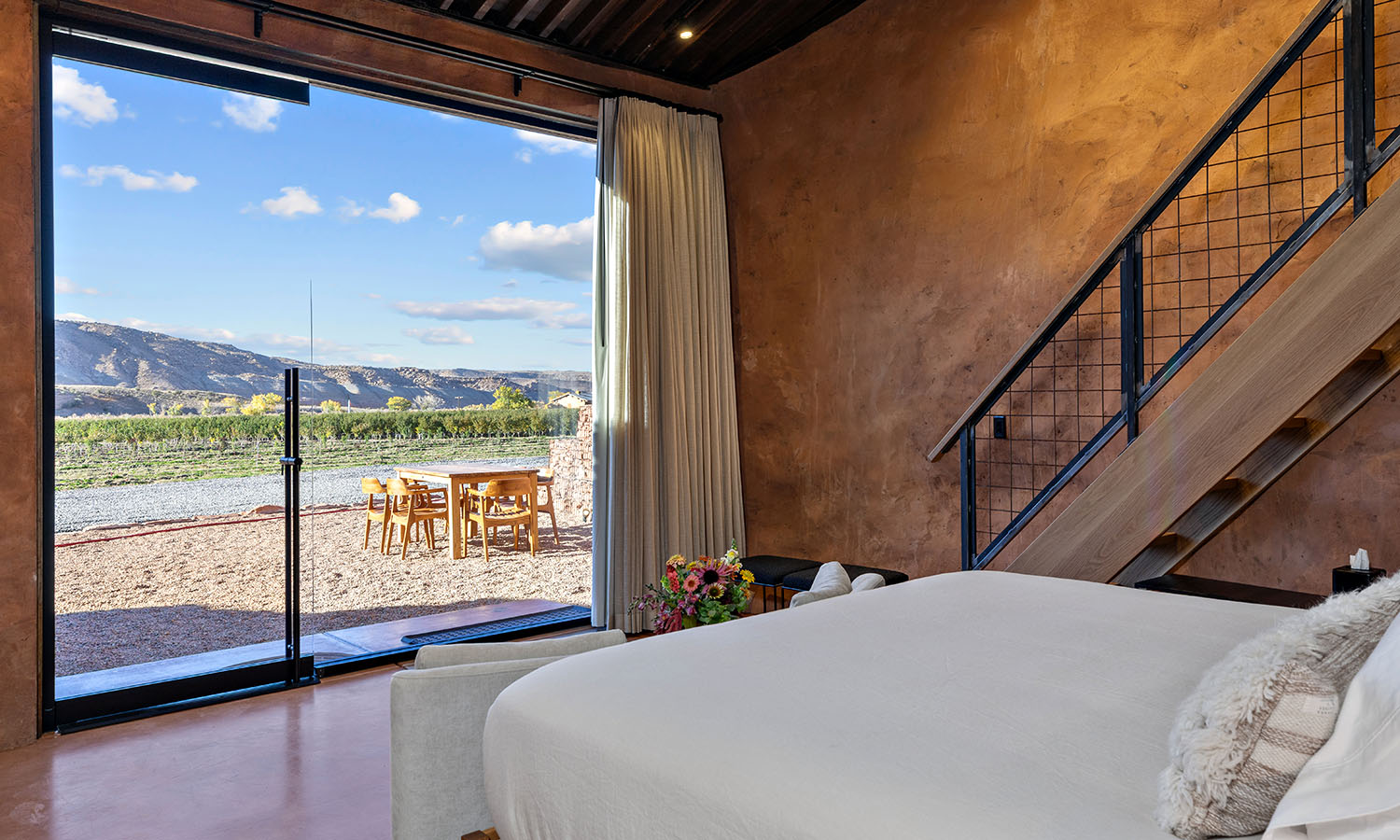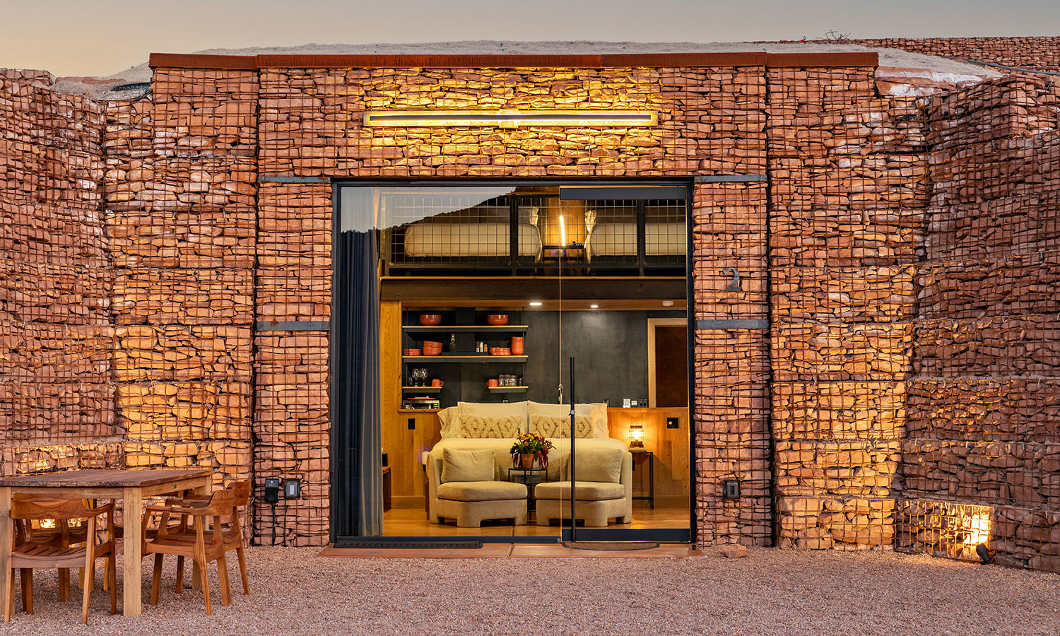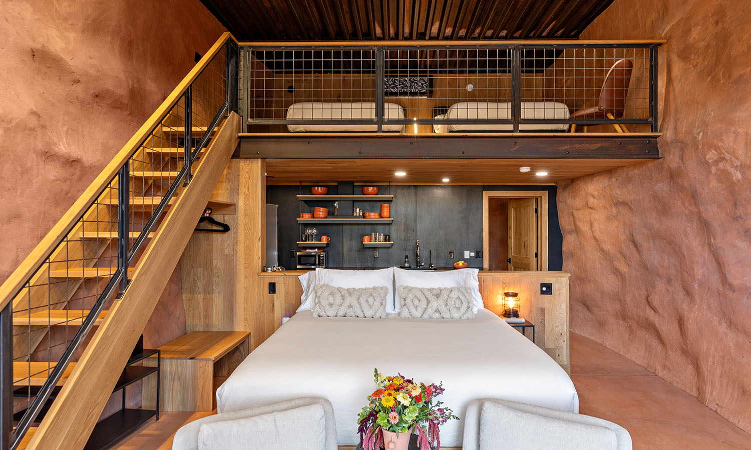 But the real magic happens when you stay in the cave suites, carved straight into sandstone cliffs. Inside, expect a king bed downstairs, two queen beds tucked up in a loft, a cute kitchenette, and a bathroom with a fancy copper bathtub.