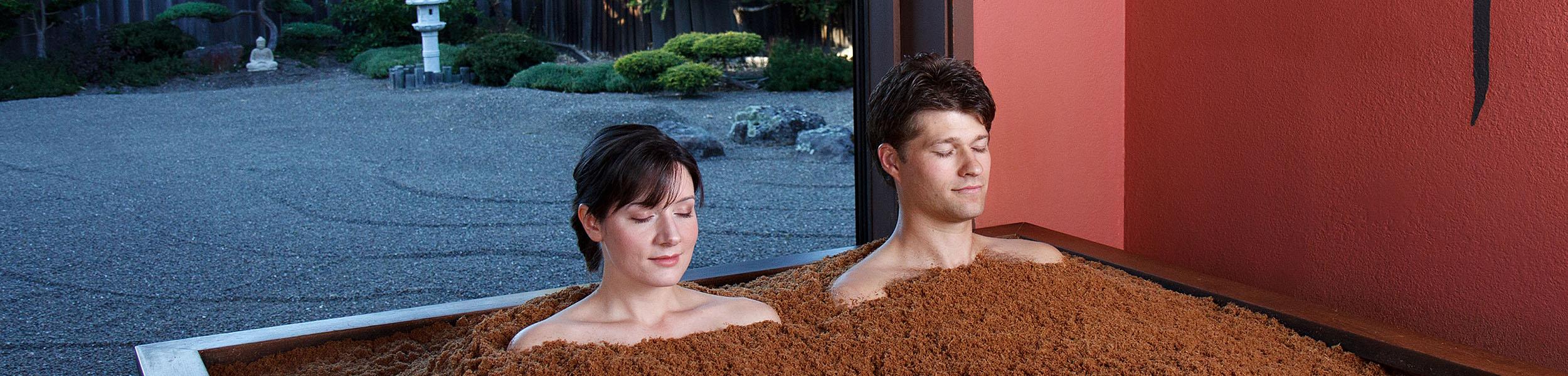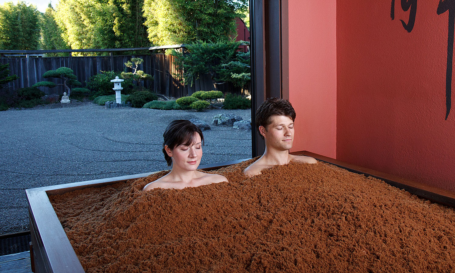 Although taking a bath in fine wood chips sounds like a prickly splinter-fest, when heated, the enzymes from the cypress and cedar trees ferment, creating healing, detoxification properties. Cedar baths are renowned for reducing muscle tension and even boosting the digestive system. Get that chip off your shoulder and give it a go.