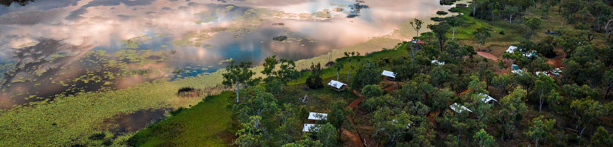 MacEacherns Camp is set on the 70,000 acre Kinrara Station where you will settle into a safari tent, complete with queen-size pillowtop bed and hot shower, on the edge of the wetlands then be ready to explore this immense landscape. Spend most of the day adventuring – swimming in waterfalls, kayaking, birdwatching, hiking, visiting the homestead – interspersed with excellent meals back at camp.