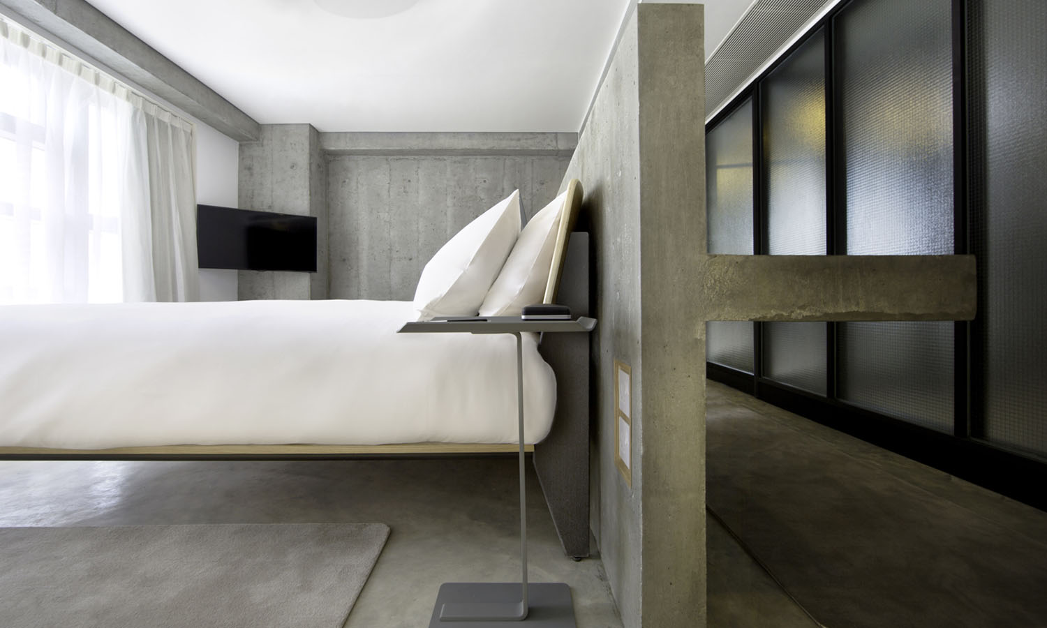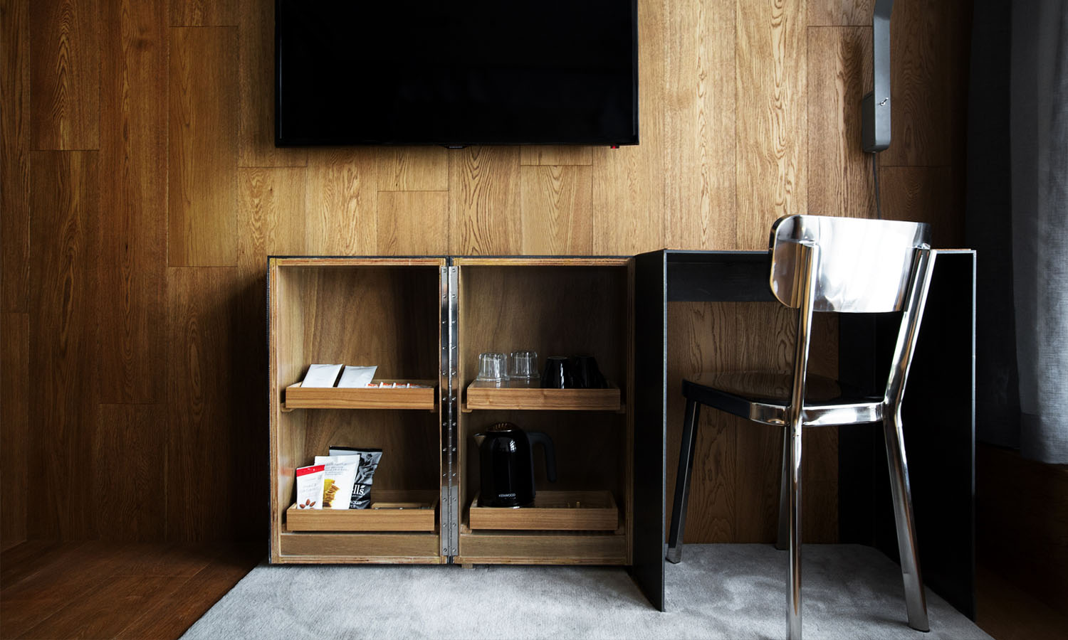 Patterned marble, galvanised steel, textured concrete and raw timber are the over-riding materials used in the 66 rooms of this boutique hotel, Tuve. It seems like minimalism in the extreme, with local architects Design Systems using a series of photos of a Swedish lake – rocks partly submerged and mists swirling – as the unlikely inspiration. Natural light is also utilised, with translucent wired glass, a material more often seen in offices, separating bed and bathroom. In the ground floor restaurant, Silver Room, where folds of metal create privacy between tables, the menu has a decidedly Japan-meets-Italy vibe. It won’t be everyone’s stripped-back glass of fizzy water, but it’s certainly a game changer