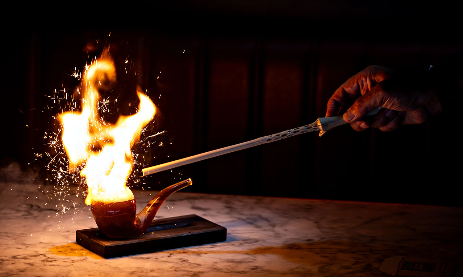 Forget dusty tomes, here, the storytelling happens in a glass. Each cocktail comes with a side of escapism: ‘The Cauldron’ bubbles with rose-petal tequila and activated charcoal, ‘Spring Court in Bloom’ shimmers like a fae fever dream, and ‘Gandalf’s Pipe’ tastes like a coffee-fuelled prophecy. There’s even Slughorn’s Hourglass, a violet-hued ode to Hogwarts that might just turn you into the life of the (wizarding) party.