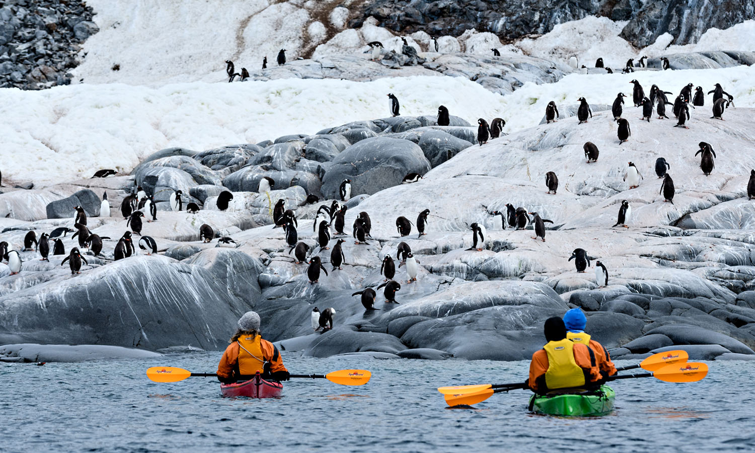 You can go sea kayaking on Chimu Adventures’ Antarctica cruises, which range in length from 10 to 21 days.