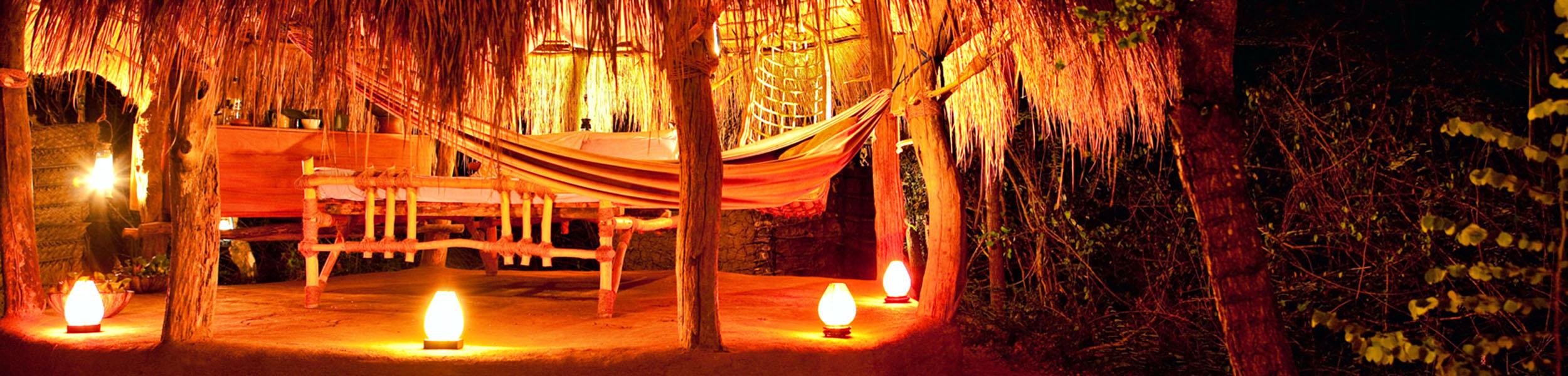 The traditional open-sided village huts and treehouses open to the wild surroundings, and all have outdoor showers and indoor bathrooms. Days here are best spent swimming in the lake, cycling, practicing yoga sequences and watching for giant squirrels, wild boar and butterflies. Dinners are a romantic, candlelit affair, as most of the electricity is solar power.