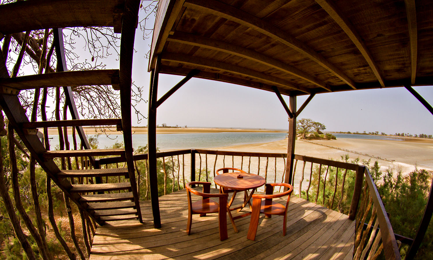 A treehouse like no other. The most captivating suites at this unusual beach resort are wrapped in the limbs of baobab trees. Each has two storeys where you can shelter from the sun while staring out towards the salt flats and waterways that eventually become the Atlantic Ocean. Those who prefer to keep their feet on terra firma can choose a cabin surrounded by bright bougainvillea or one on stilts over the water.