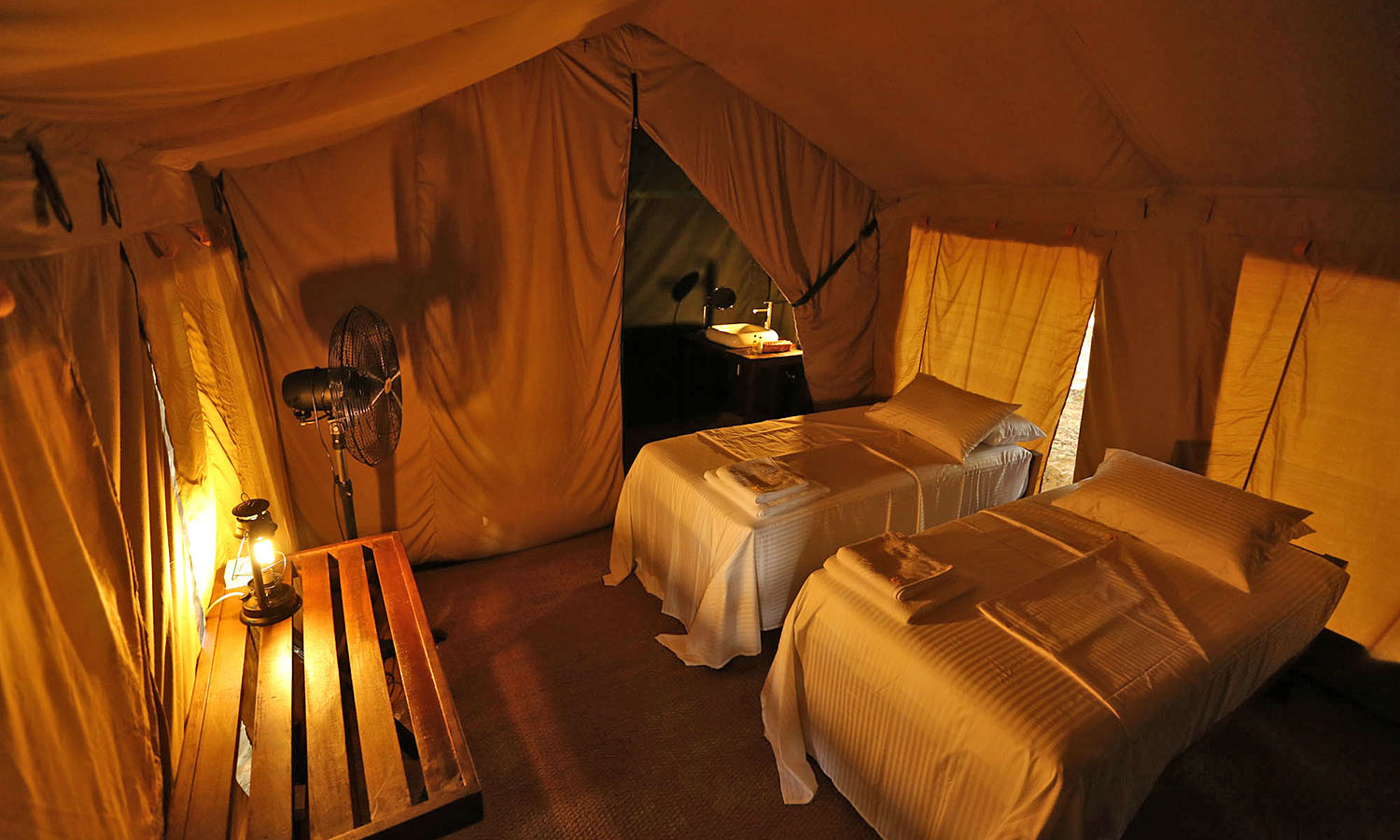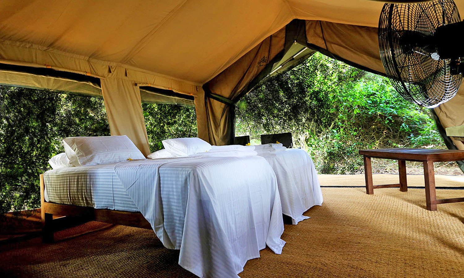 Better known for its wildlife encounters than sandy shores, the teardrop-shaped island of Sri Lanka possesses some of the world’s most beautiful beaches. Tucked between jungle and a gorgeous beach on the southeast coast of the island, this ‘glampsite’ showcases the best of both attractions with plenty of luxurious trimmings to keep campers happy.