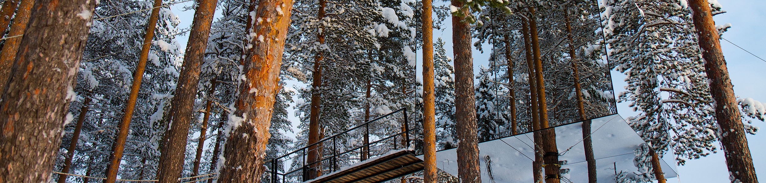 Scandinavian architecture meets the great outdoors in the futuristic treehouses at Treehotel. These five unique dwellings feature sleek design suspended among the native pines, blending with the environment so you feel part of the forest itself.