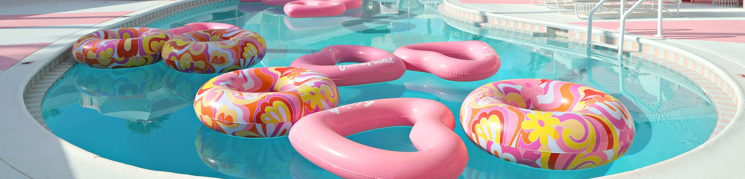 The refurbished mid-century motel contains seven rooms of whimsical, Barbie-style fabulousness, located in the heart of inimitable Palm Springs.