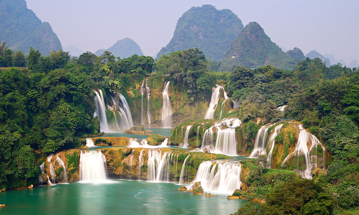 Vietnam’s answer to Iguazu Falls is located in Cao Bang, in the country’s far northeast, and provides a spectacular natural border with China. Framed by dramatic limestone karsts, rice paddies and bamboo groves, Ban Gioc waterfall tumbles 30 metres down a series of cascades fed by the Quay Son River.