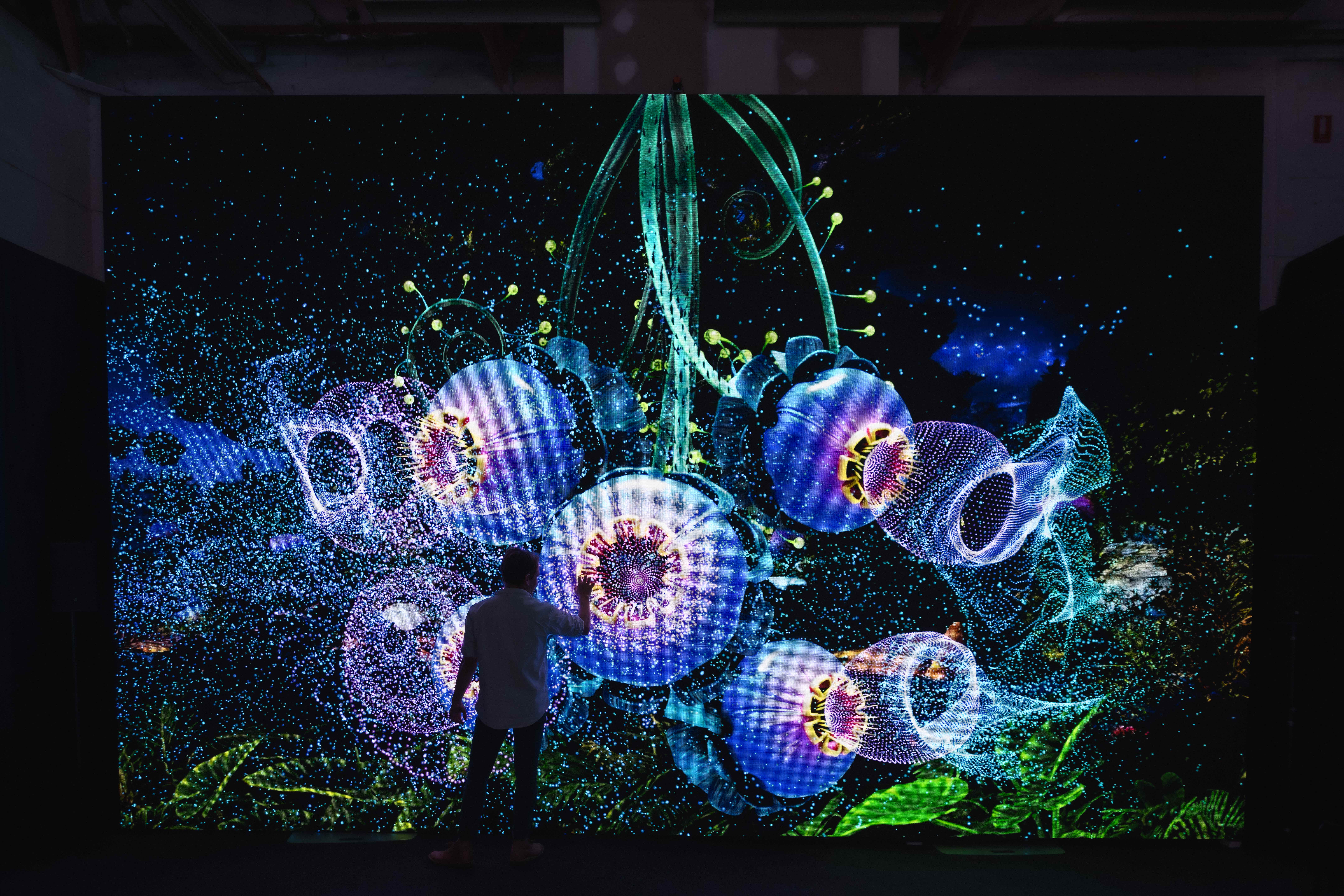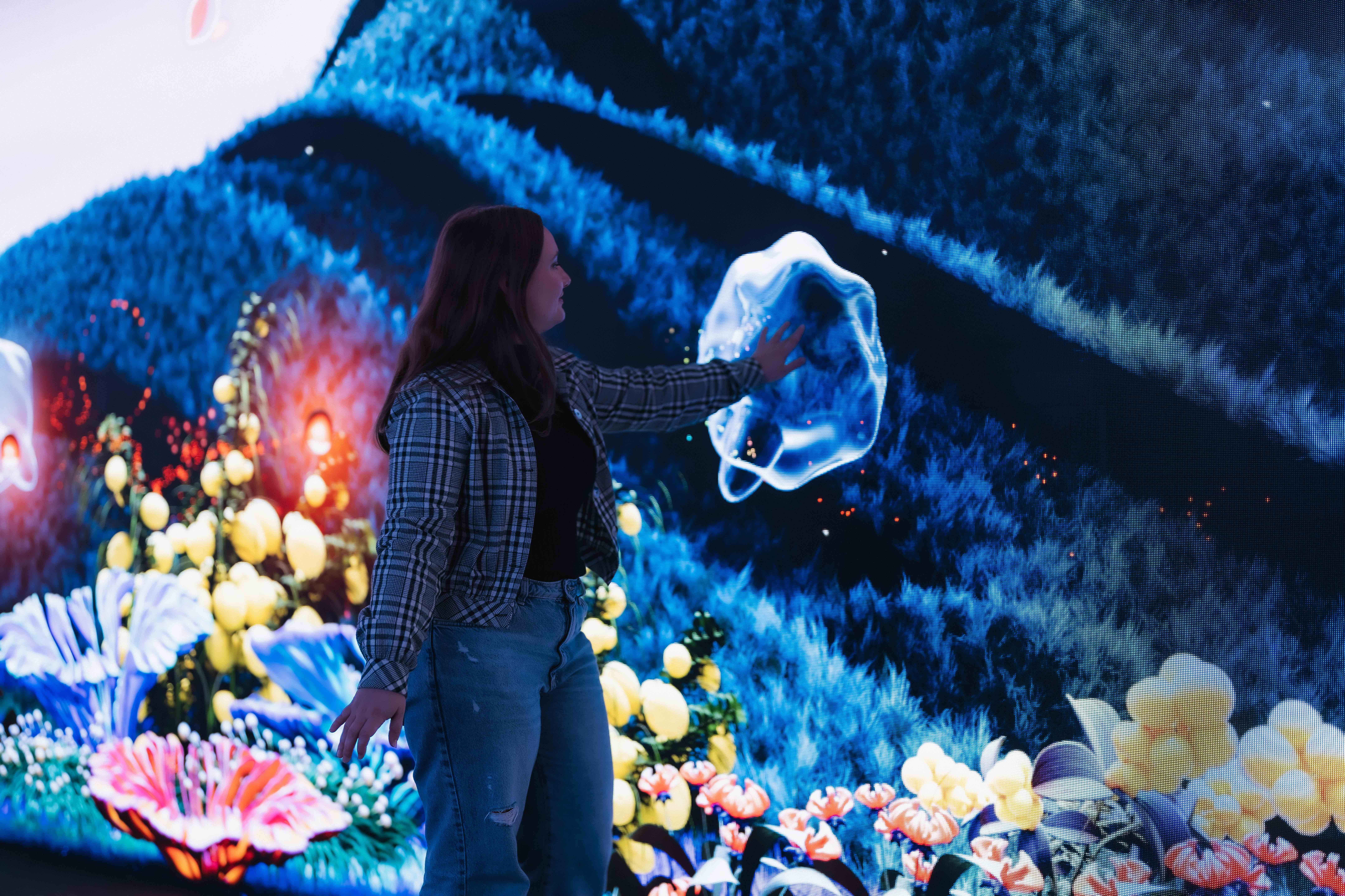 Spanning 150 square metres of LED screens, a garden comes to life at your fingertips and takes you on a journey of growth, curiosity and movement. Watch as the seed you plant gets bigger, transforming into a lush landscape full of colourful flowers, buzzing insects and trickling water.