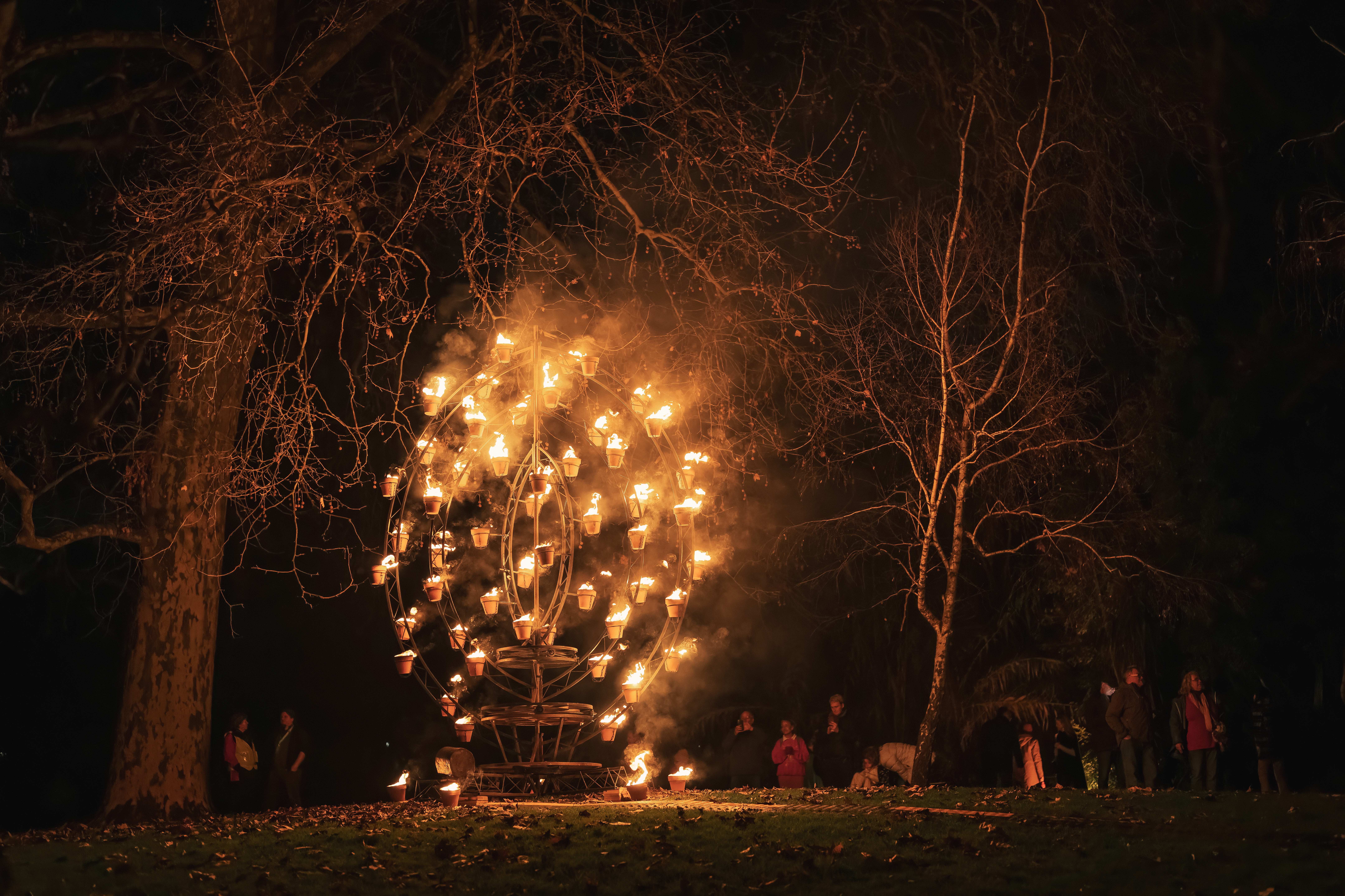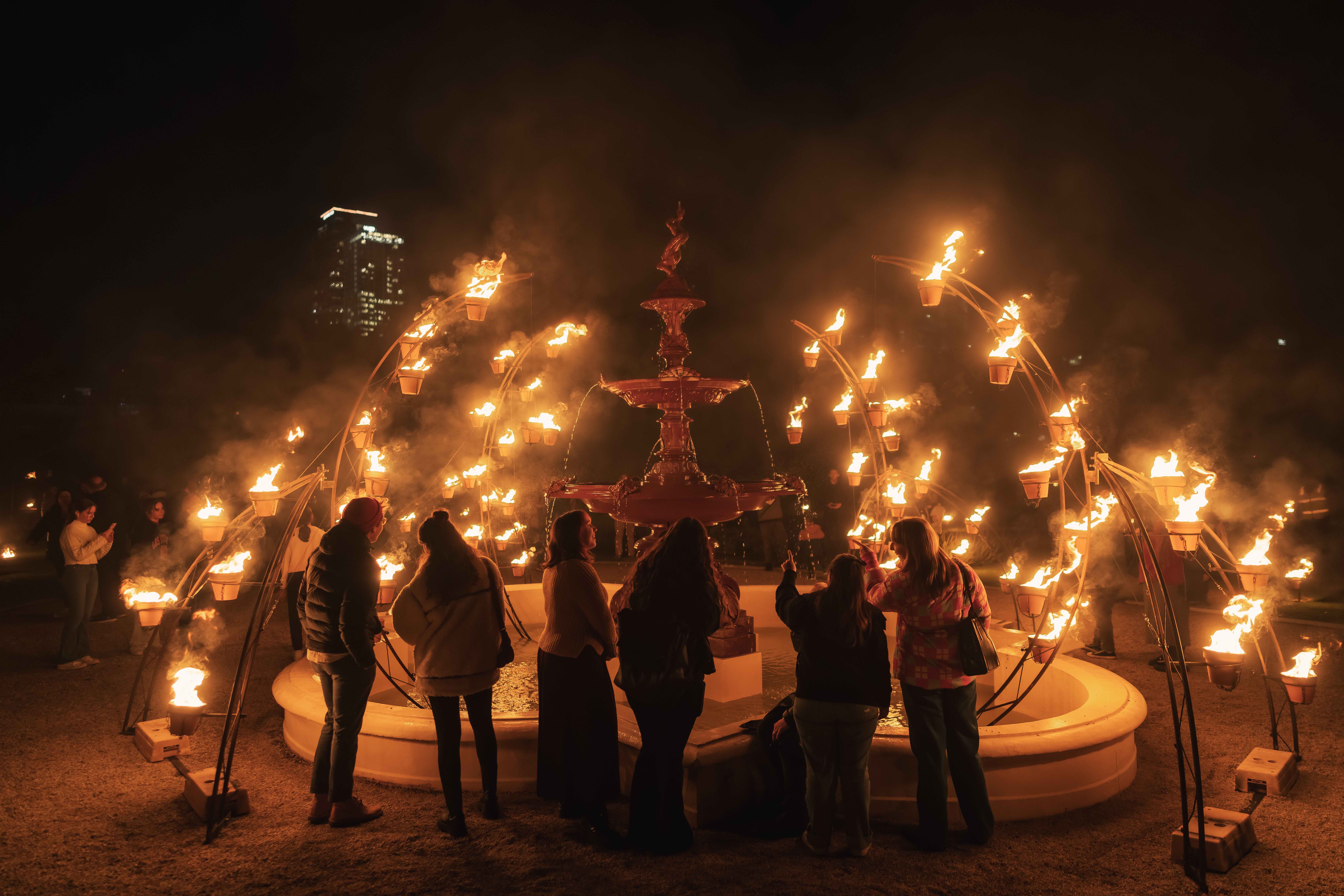 They’re everywhere; between the trees, in the middle of lakes, lighting up walkways and coming out of fountains. You can’t wander to one fiery sculpture without spotting several others, encouraging the imagination to run wild with thoughts of celebratory sacrifices and cult initiations – only aided by the ritualistic soundtrack reverberating through the park.