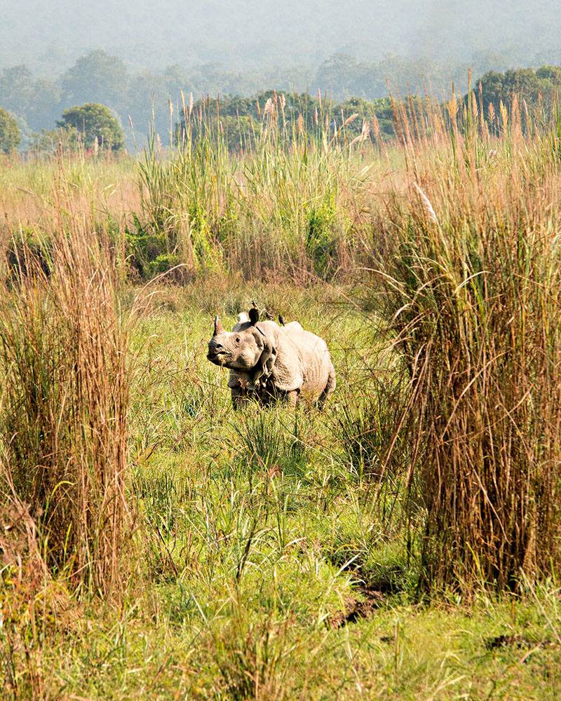 “Come!” Sagar commands, darting down a game trail. I catch up to him crouching under cover on a berm overlooking the riverbank. The rhino emerges below us, 20 metres away. It snorts, holding its head high, looking for enemies in the jungle gloom.
