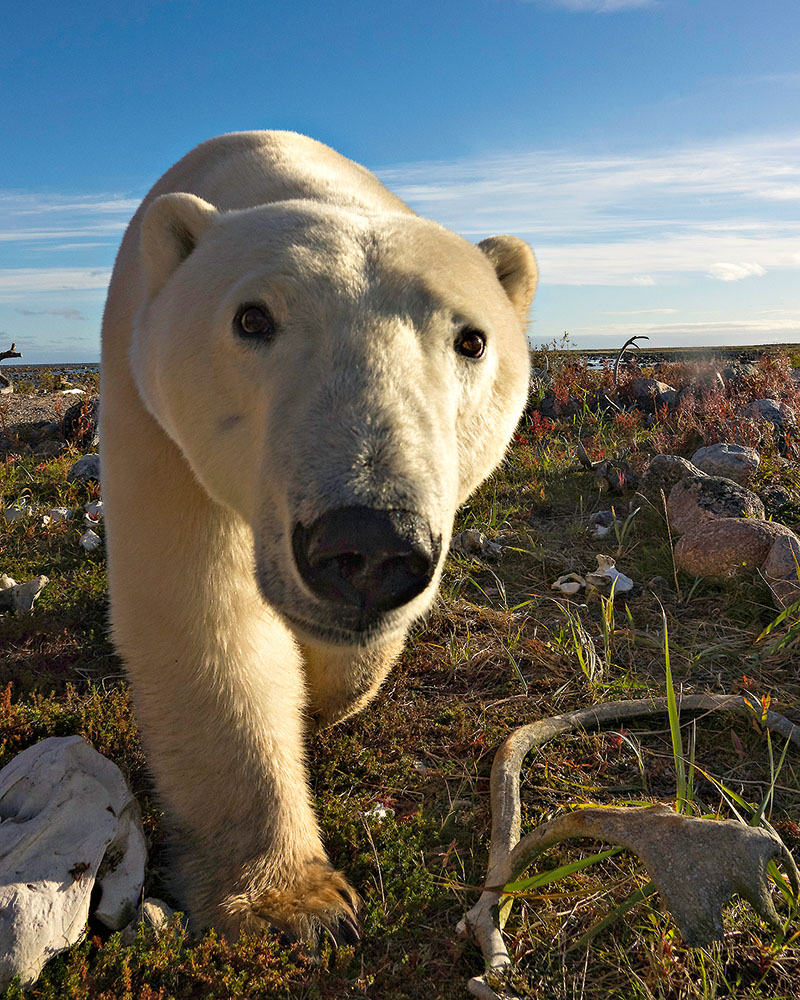 We’re so close to the polar bear I can hear him snoring. Terry Elliot, a guide from the nearby Seal River Heritage Lodge, motions for us to stop walking. It’s late September and blades of sunlight slice across the western shore of Hudson Bay in Manitoba. The bear glows a bright ivory against the autumn tundra.